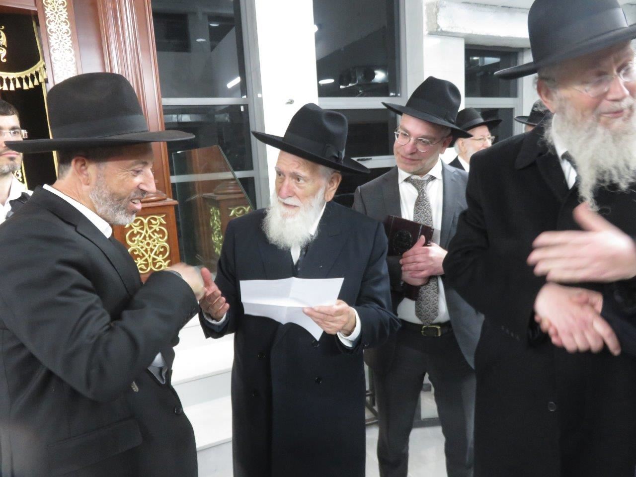 בסיום הערב פרצו כולם יחד בריקוד מיוחד כשהם נפרדים בברכה של אורך ימים ושנות חיים וקיבלו מידיו של ראש הישיבה ספר חידושי תורה לכבוד באי כנס "חיבת הקודש" פרפרת ביאורים על מגילת אסתר וכן את הספר "באורך נראה אור" על מכמני התורה שכתב הגר"י מלול ראש הישיבה "יד שלמה".