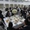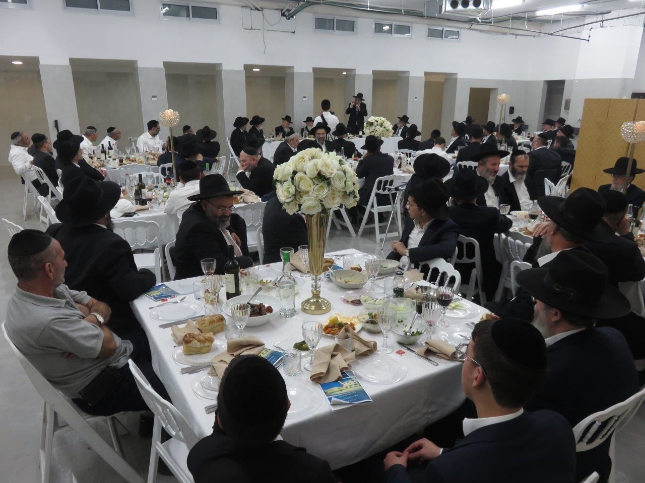 המוני הבוגרים היסבו סביב שולחנות ערוכים בסעודה מכובדת ויוקרתית, אותה תרם בוגר הישיבה מוקיר ורחים רבנן ר' אילן אדרי מיסד בית הכנסת "מעם לועז" שאף ריגש את המשתתפים בנאומו שיצא מעומק ליבו ללא הכנה. ליד כל צלחת הונחה חוברת משירי שבת קודש שנהגו לשיר בסעודות השבת בישיבה, עם כניסתו לאולם שע"י בית המדרש של ראש הישיבה, כל המשתתפים קמו ממקומותיהם ופתחו במעגל ענק ושרו "ימים על ימי מלך תוסיף" ו"כי אורך ימים ושנות חיים יוסיפו לך", המוני בוגרים נפגשו אחד עם השני לאחר שעשרות שנים לא התראו וכך נראו מחזות מרגשים משולחן לשולחן.