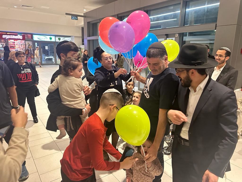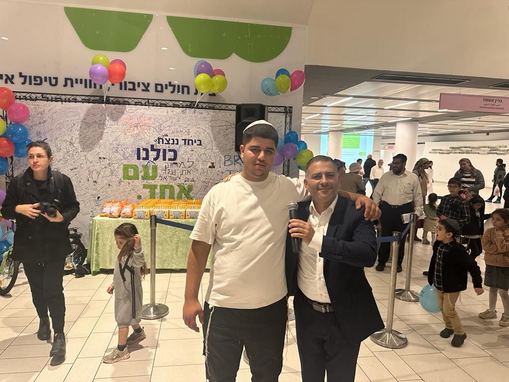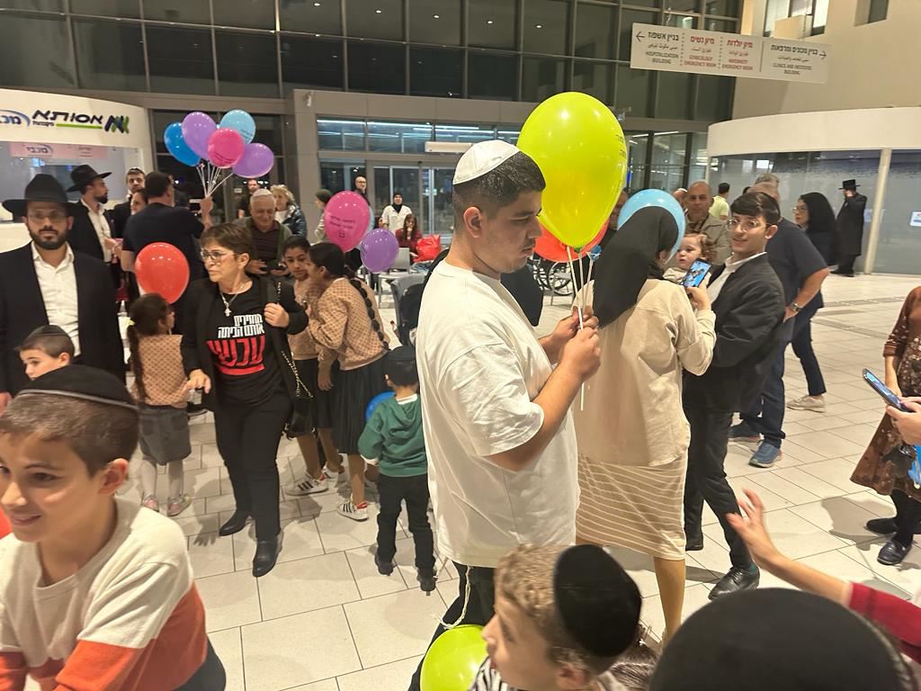 המתנדבים אלי כהן ובנו יחד עם אברכי כולל 'סוכת רחמים' שימחו את הפצועים המאושפזים בבית החולים