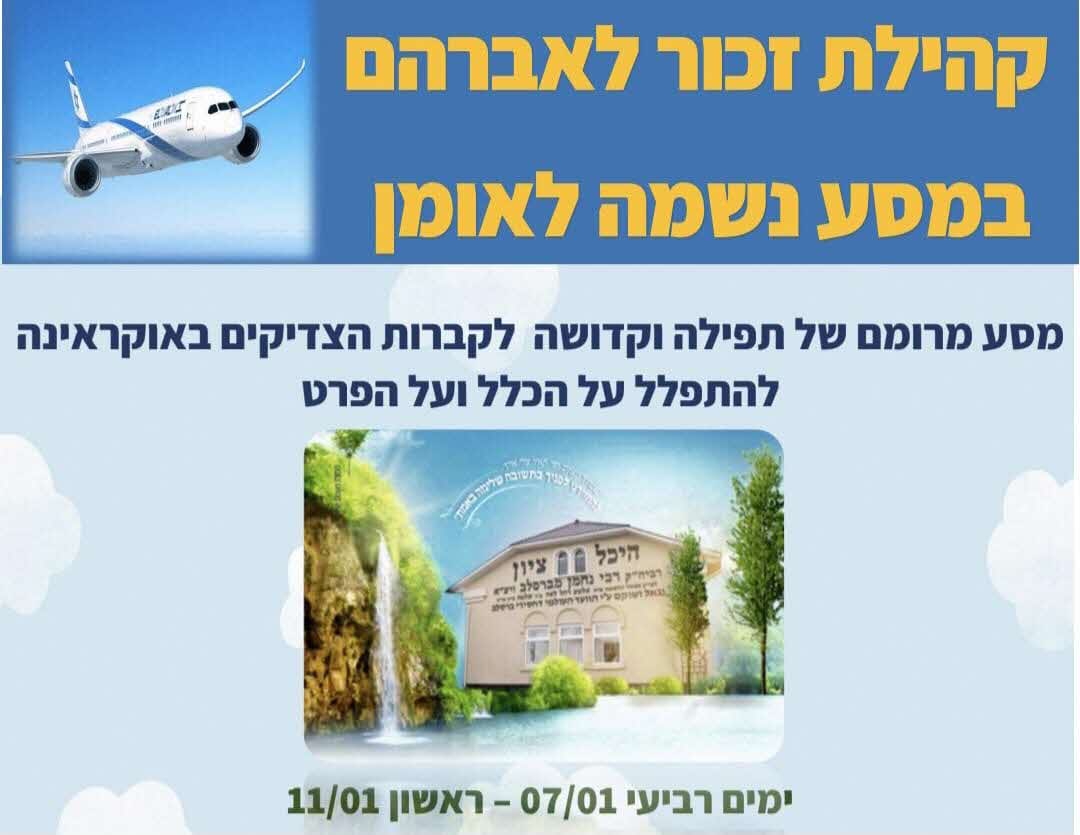 נשלמות ההכנות לקראת "מסע הנשמה" המיוחד של קהילת "זכור לאברהם" רובע ט' אל קברי הצדיקים באוקראינה ובראשם הציון הקדוש של רבי נחמן מברסלב זיע"א באומן.