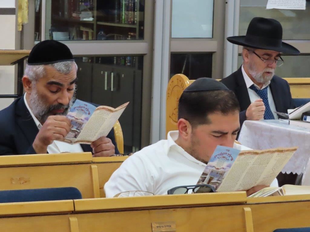 לפני התיבה עבר הרה"ג ר' מאיר בנאי שליט"א מרבני בית המדרש. בסיום התפילות ערכו את תפילת הרש"ש זיע"א וברכת מי שבירך לחיילי צה"ל, לכל הפצועים ולחטופים שישובו במהרה לחיים טובים ולשלום.