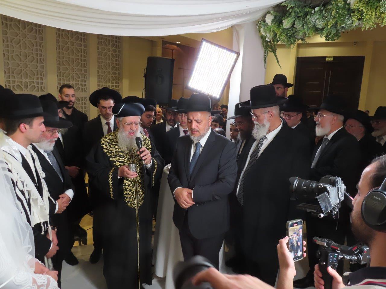קוֹל שָׂשׂוֹן וְקוֹל שִׂמְחָה קוֹל חָתָן וְקוֹל כַּלָּה: ראשי ישיבות, רבנים, ראשי כוללים, שרים, חברי כנסת ואחמ"ים השתתפו אמש בשמחת הנישואין לבתו של שלוחא דרבנן הרב עמרם כנפו, יו"ר ש"ס וסגן ראש העיר לשעבר, עם החתן המפואר הרב מאיר אפללו מבחירי ישיבת "עטרת שלמה" ונכדו של הרה"צ רבי מרדכי אפללו ממקימי עולה של תורה בבני ברק.