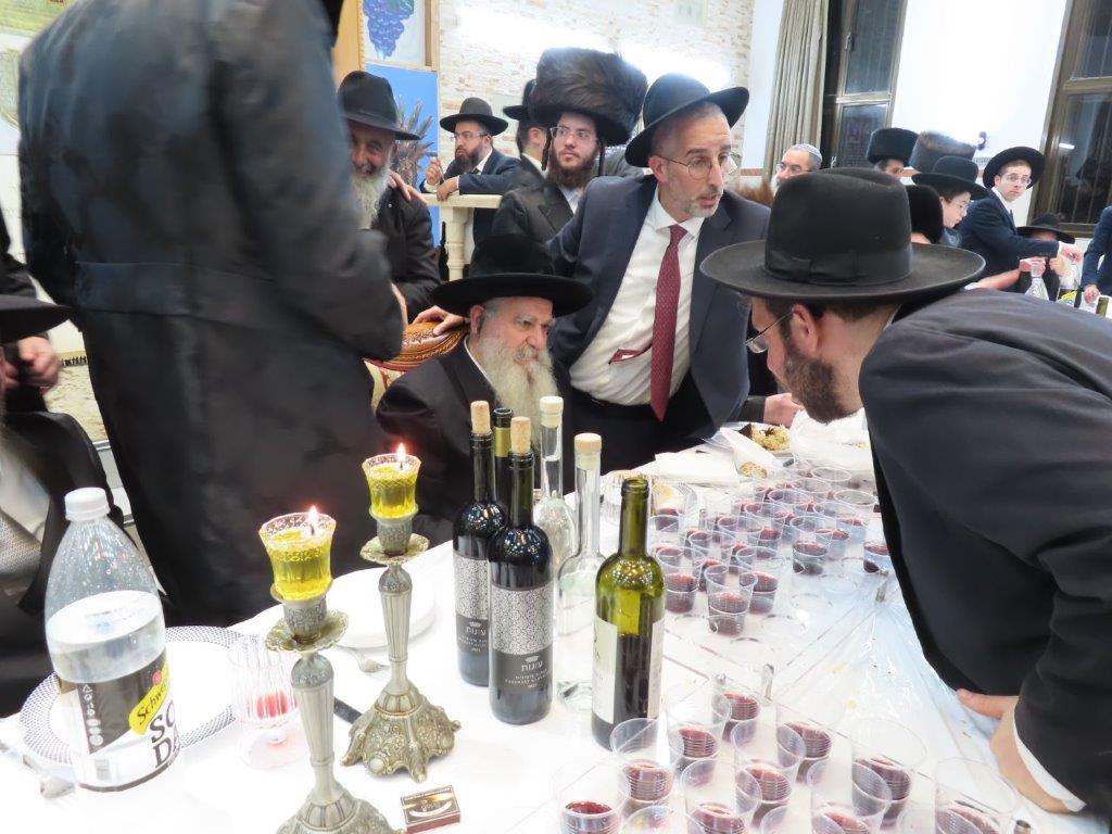 עם היכנסו של כ"ק האדמו"ר רבי רפאל שליט"א, נטלו ידים לסעודת מצוה כשלאחר מכן הציבור הגדול עבר בהמוניו בסך לקבל כוס של ברכה וברכת לחיים.