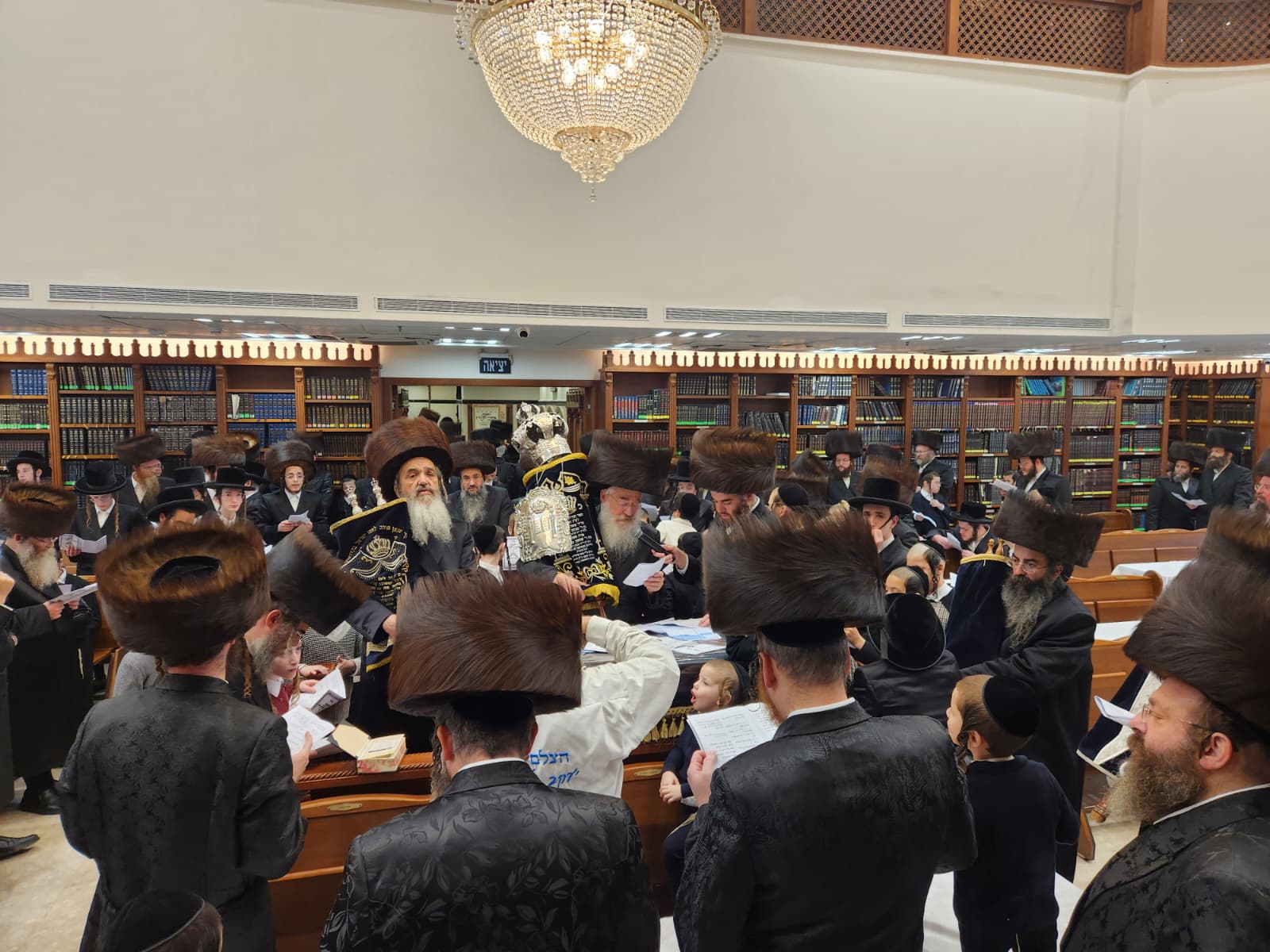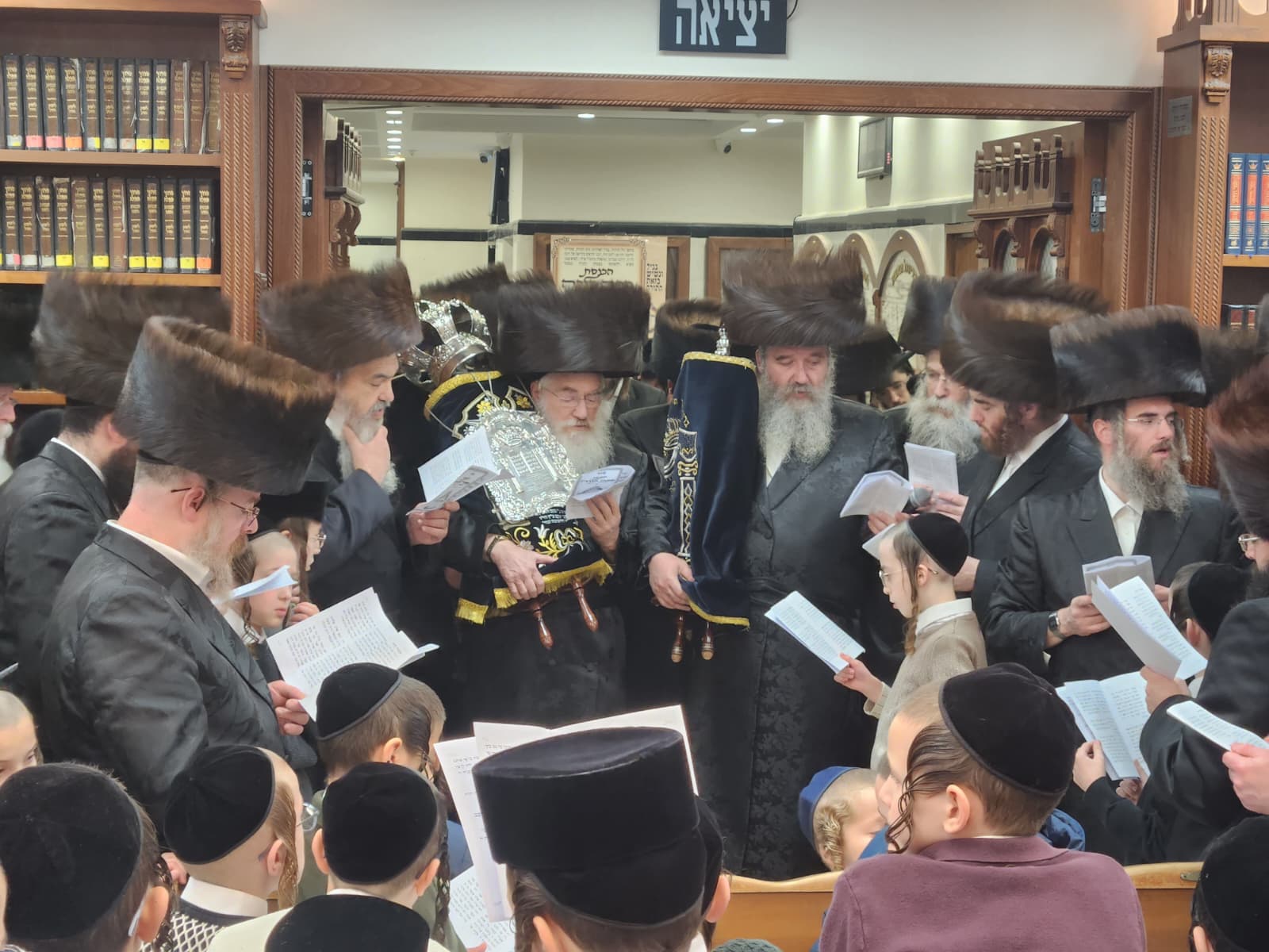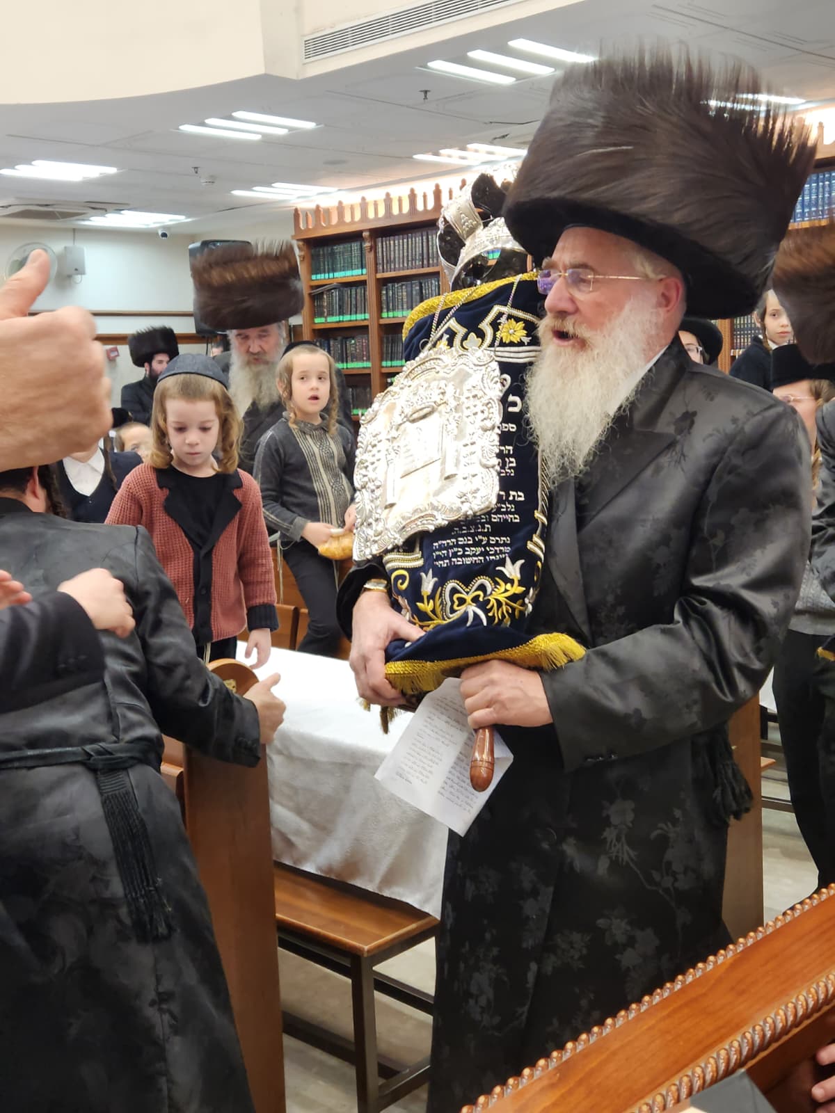 הרה"ח ר' מרדכי כץ, מחשובי חסידי בעלזא ברובע ז' החדשה באשדוד הכניס ספר תורה לבית המדרש 'בית פנחס' דחסידי בעלזא ברח' ינאי בעיר לעילוי נשמת הוריו בהשתתפות קהל המתפללים והמון חוגג לכבודה של תורה