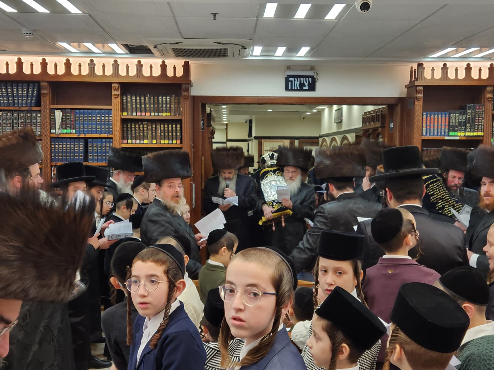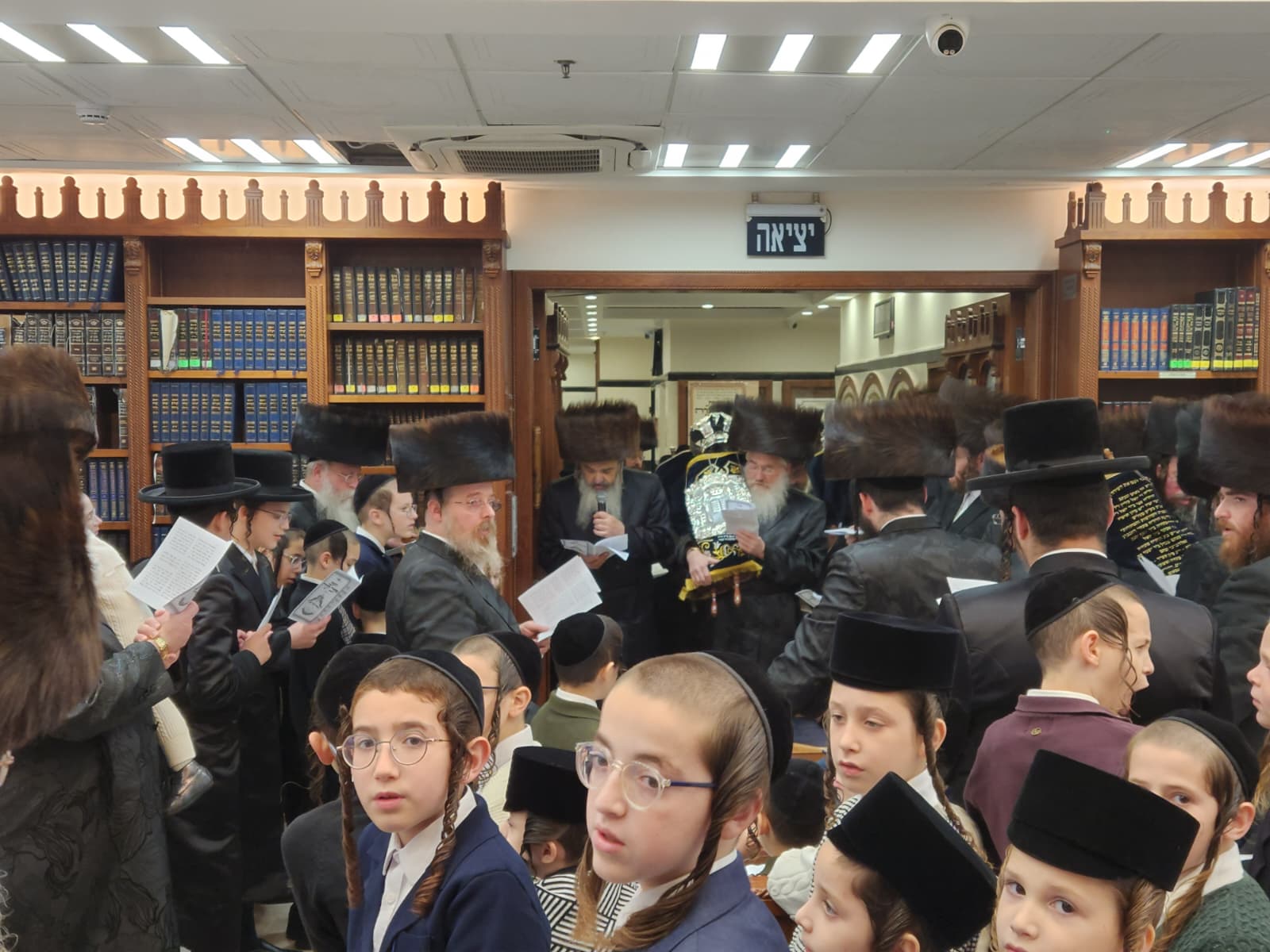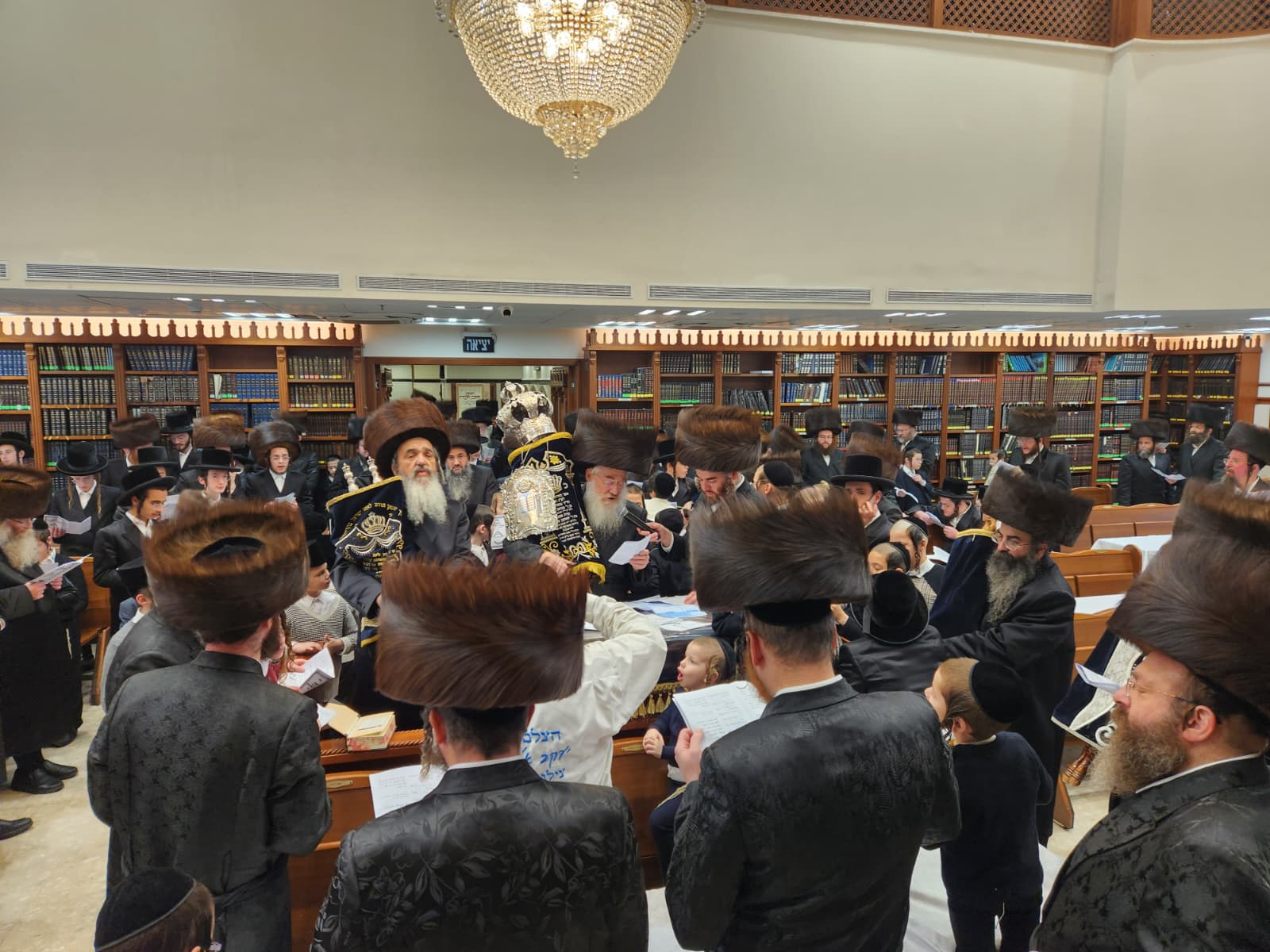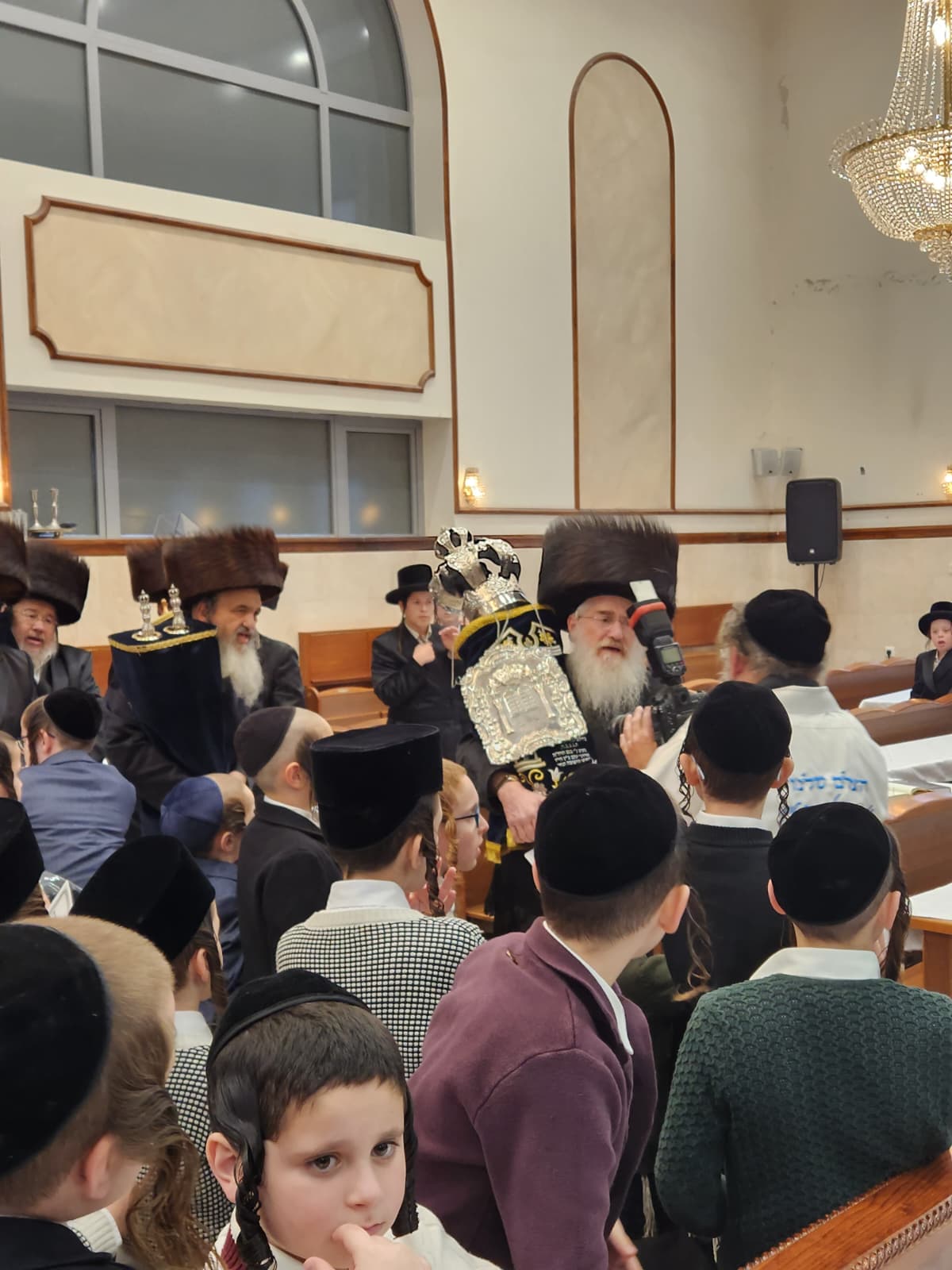 הרה"ח ר' מרדכי כץ, מחשובי חסידי בעלזא ברובע ז' החדשה באשדוד הכניס ספר תורה לבית המדרש 'בית פנחס' דחסידי בעלזא ברח' ינאי בעיר לעילוי נשמת הוריו בהשתתפות קהל המתפללים והמון חוגג לכבודה של תורה
