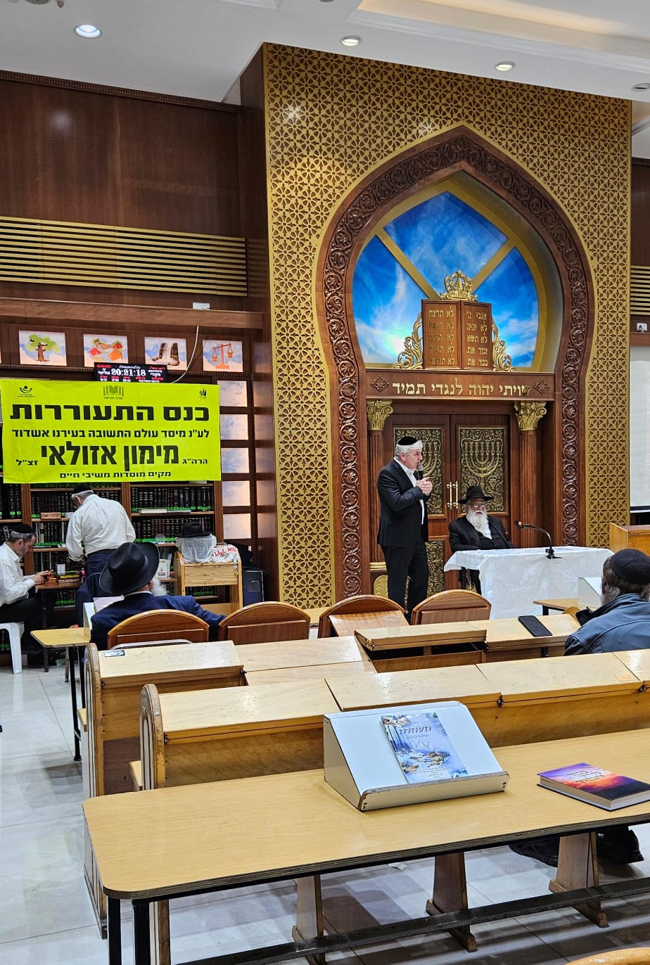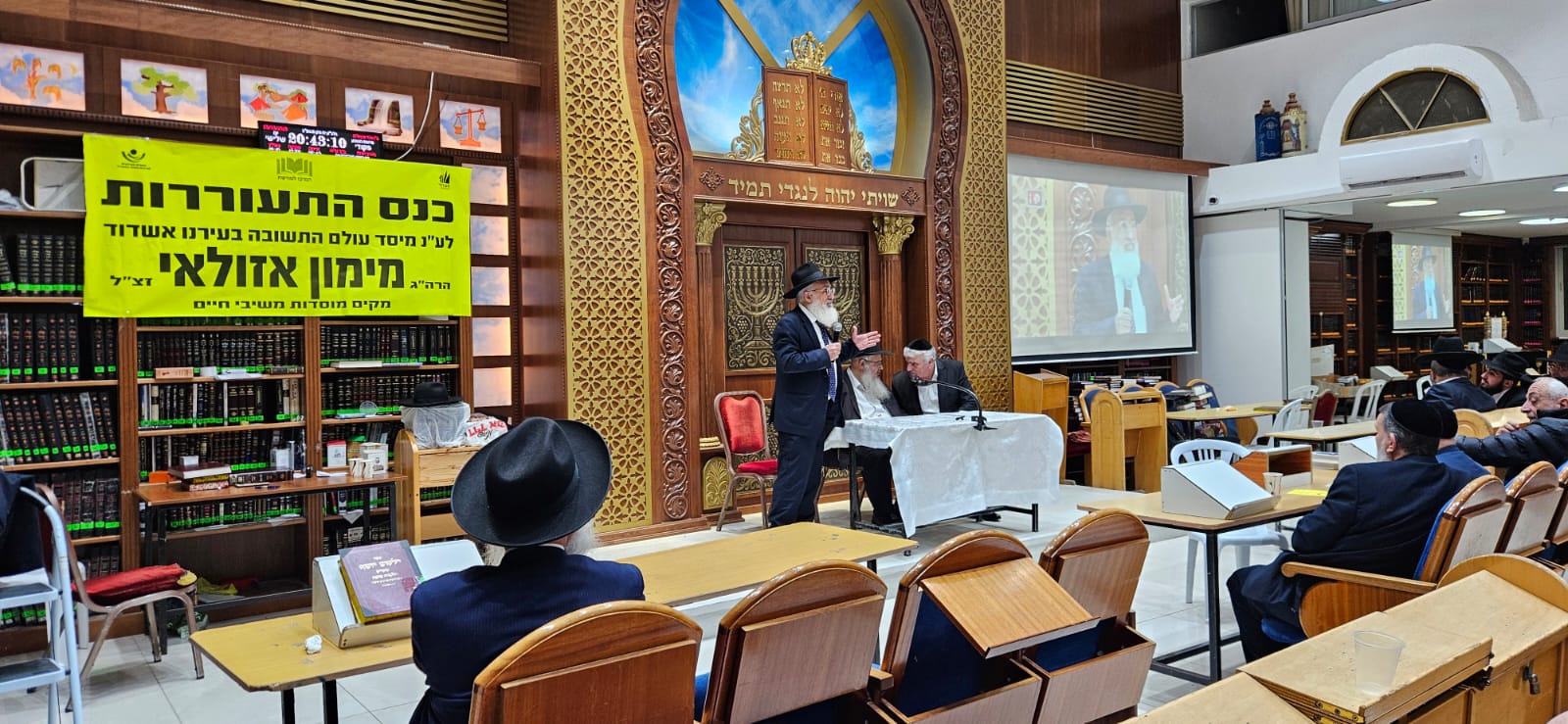 ביוזמת "המרכז למורשת" בראשות מ"מ ראש העיר ר' אבי אמסלם, נערכה הערב עצרת התעוררות רבת משתתפים לזכרו הטהור של הרה"ג מימון אזולאי זצוק"ל, מקים עולה של תורה, מייסד עולם התשובה בעיר אשדוד וראש מוסדות 'משיבי חיים'
