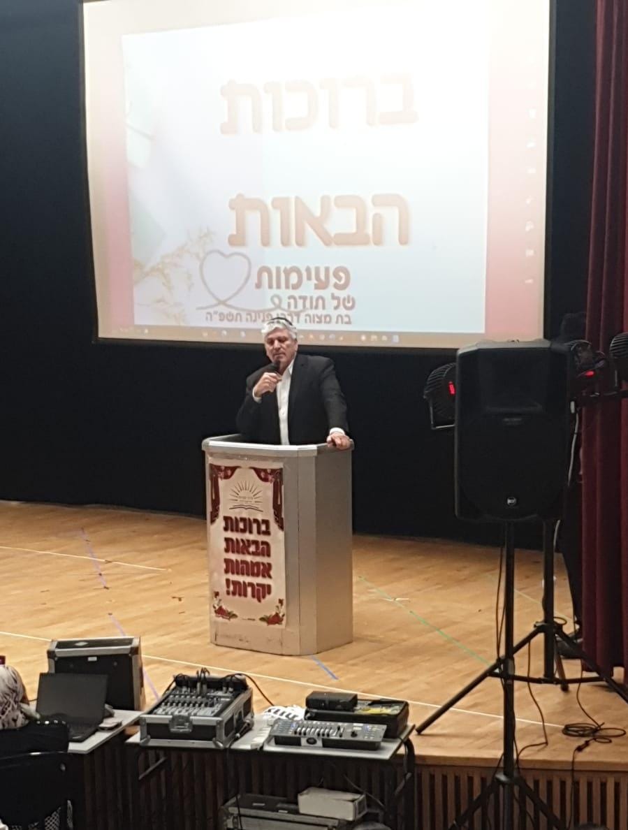 מ"מ ראש העיר הרב אבי אמסלם נשא דברים באירוע ובירך את צוות בית הספר על העשייה הפוריה והבטיח לסייע ככל יכולתו על מנת ביה"ס יגיע למבנה קבע בהקדם.