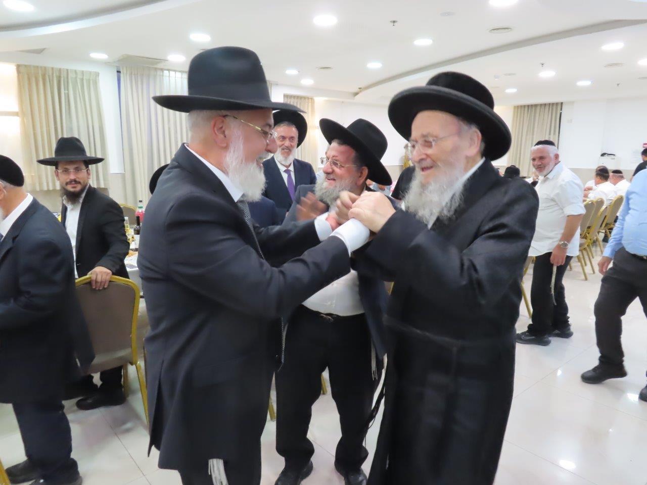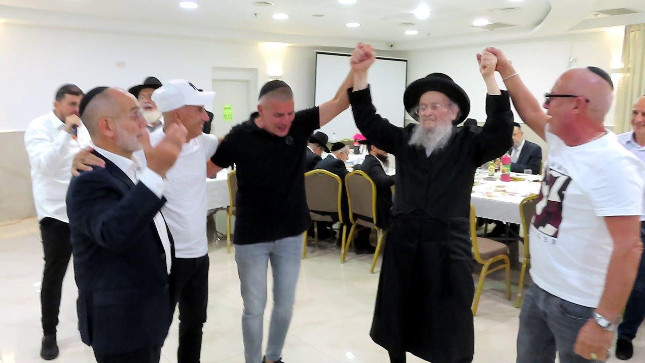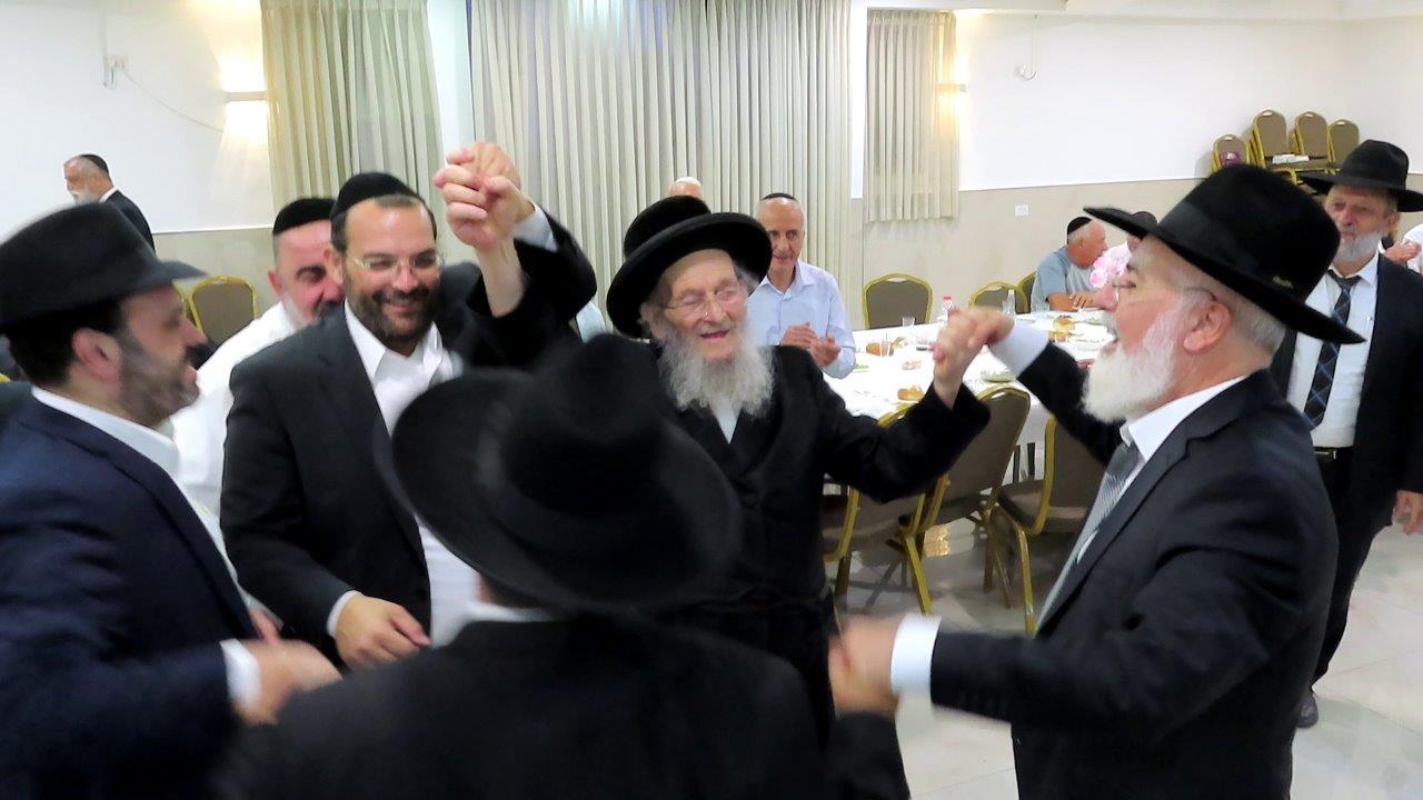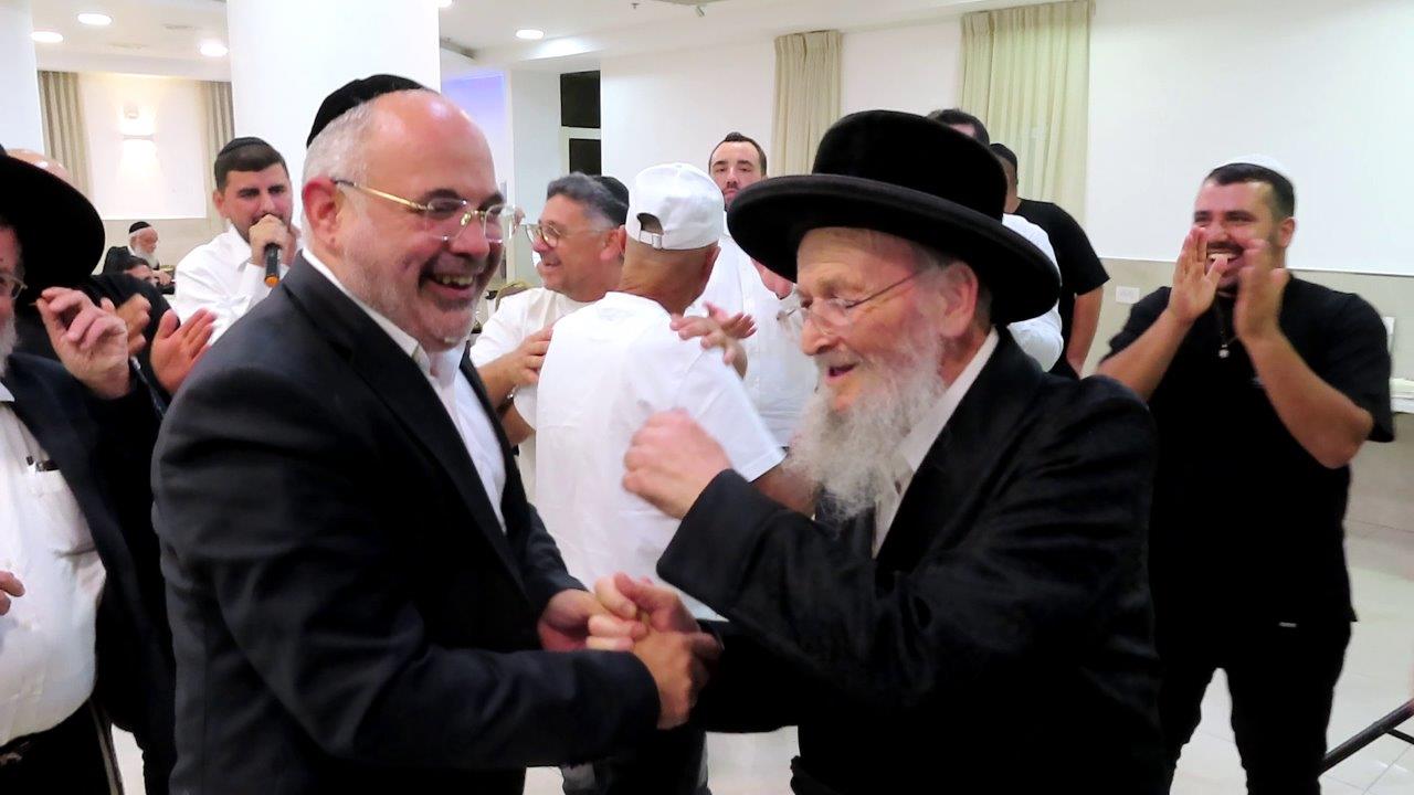 צפו: הדיין הישיש של בעלזא מפזז עם ראש העיר ויו"ר המוע"ד בחגיגת הסיום (וידאו)