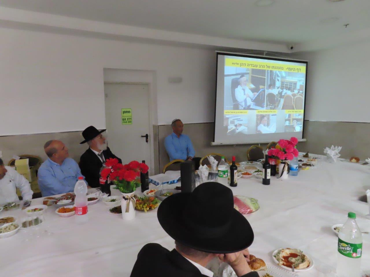 נציג משתתפי השיעור מר שלמה חיות, ערך מצגת מיוחדת על מעלתו וחשיבותו של שיעור הדף היומי ובו הביא את סדר מסכתות הש"ס, בדבריו נשא דברי תורה קצרים והודה בשם המשתתפים לרב עובדיה דהן על המסירות הרבה בשיעור הנפלא ועל ההסברה, וכן לכל חברי משתתפי השיעור שכולם יחד מגובשים ואשרנו שזכינו לכך. זו ההזדמנות להודות לרב עובדיה על התמיכה בלומדי הדף היומי, ברכישת מסכתות בהנחה משמעותית בכל לימוד מסכת חדשה.