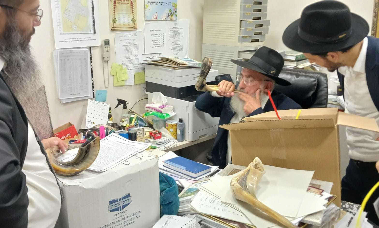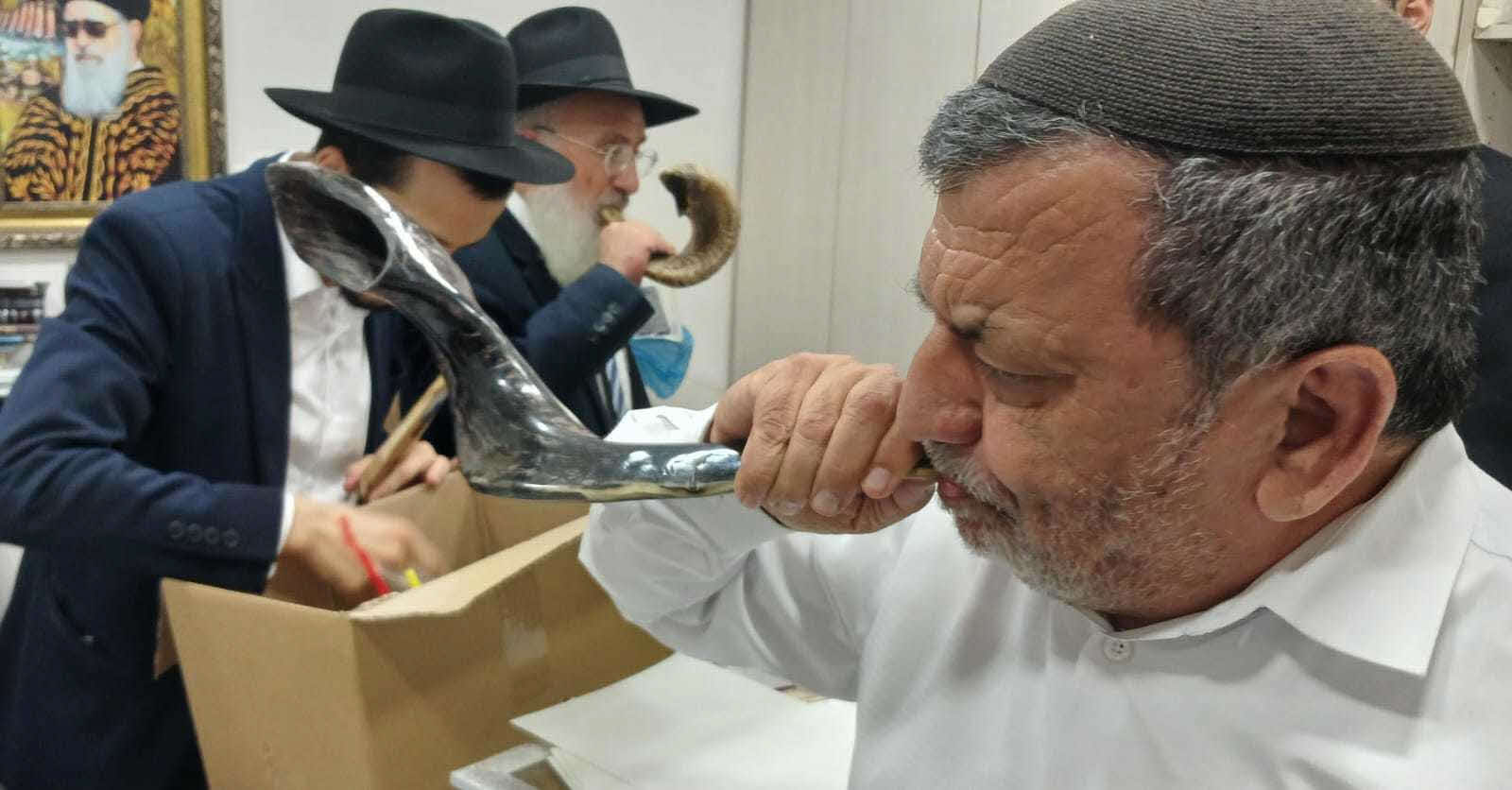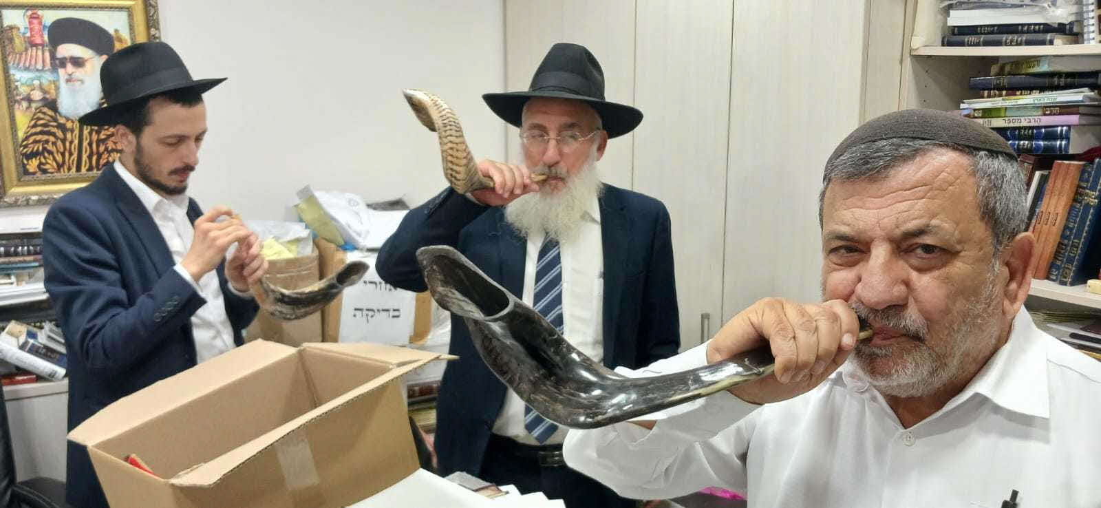גם מ"מ יו"ר המועה"ד ר' דוד בן-מנחם מיסד בית הכנסת "תהילת ציון", נראה אוחז שופר בידו ומשמיע את קולות השופר בהצלחה.