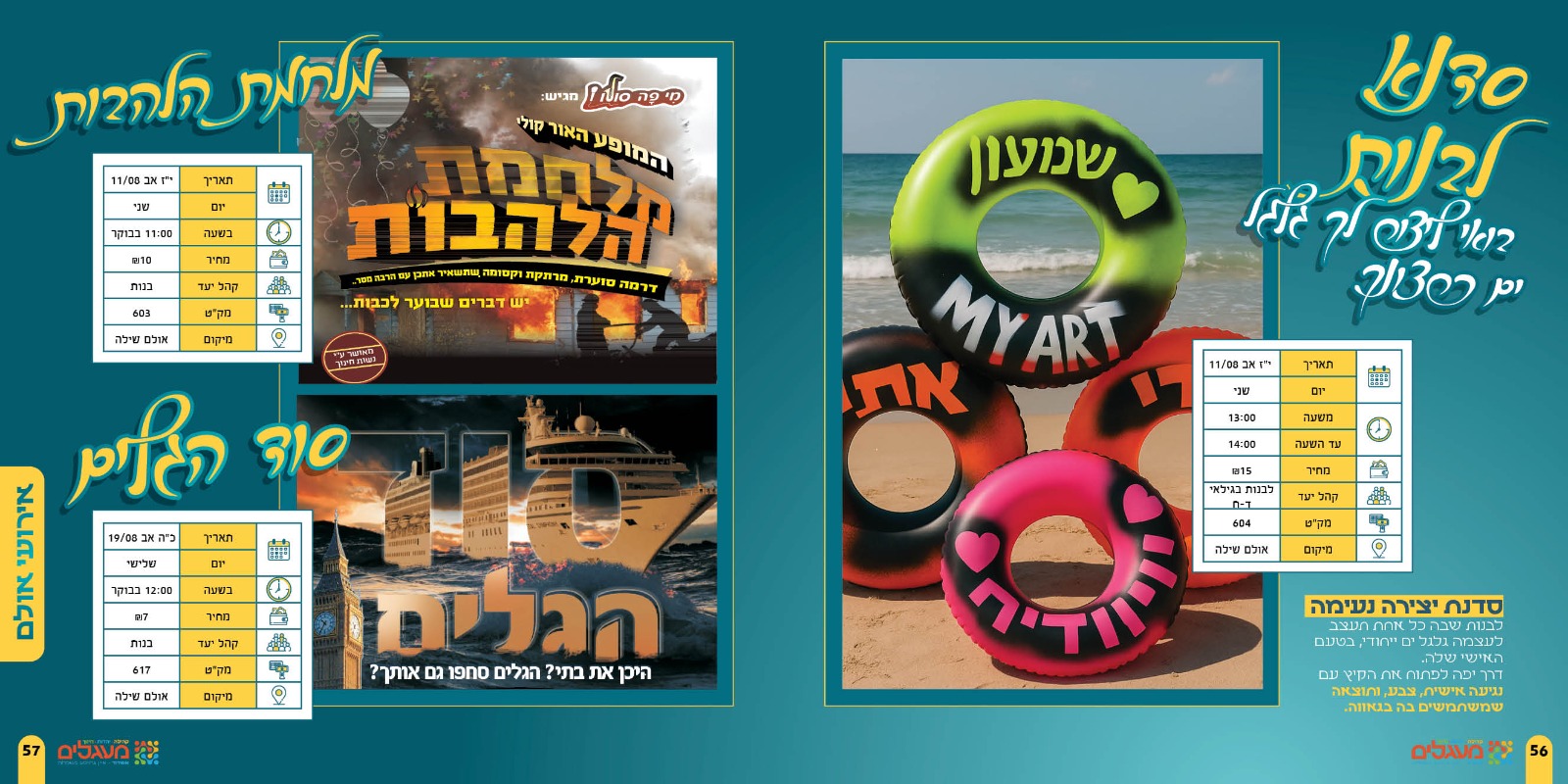 ארגון 'מעגלים', הבית של האירועים התורניים בעיריית אשדוד, השיקו את קמפיין קיץ רחב היקף עם מגוון עצום של פעילויות איכותיות, עשירות בתוכן וערכים, המותאמות במיוחד לציבור התורני בעיר ולכל המשפחה. לאחר שנה מאתגרת, 'מעגלים' פותחת שער למנוחה, התרעננות וזמן איכות משפחתי בלתי נשכח בימי בין הזמנים הבעל"ט.