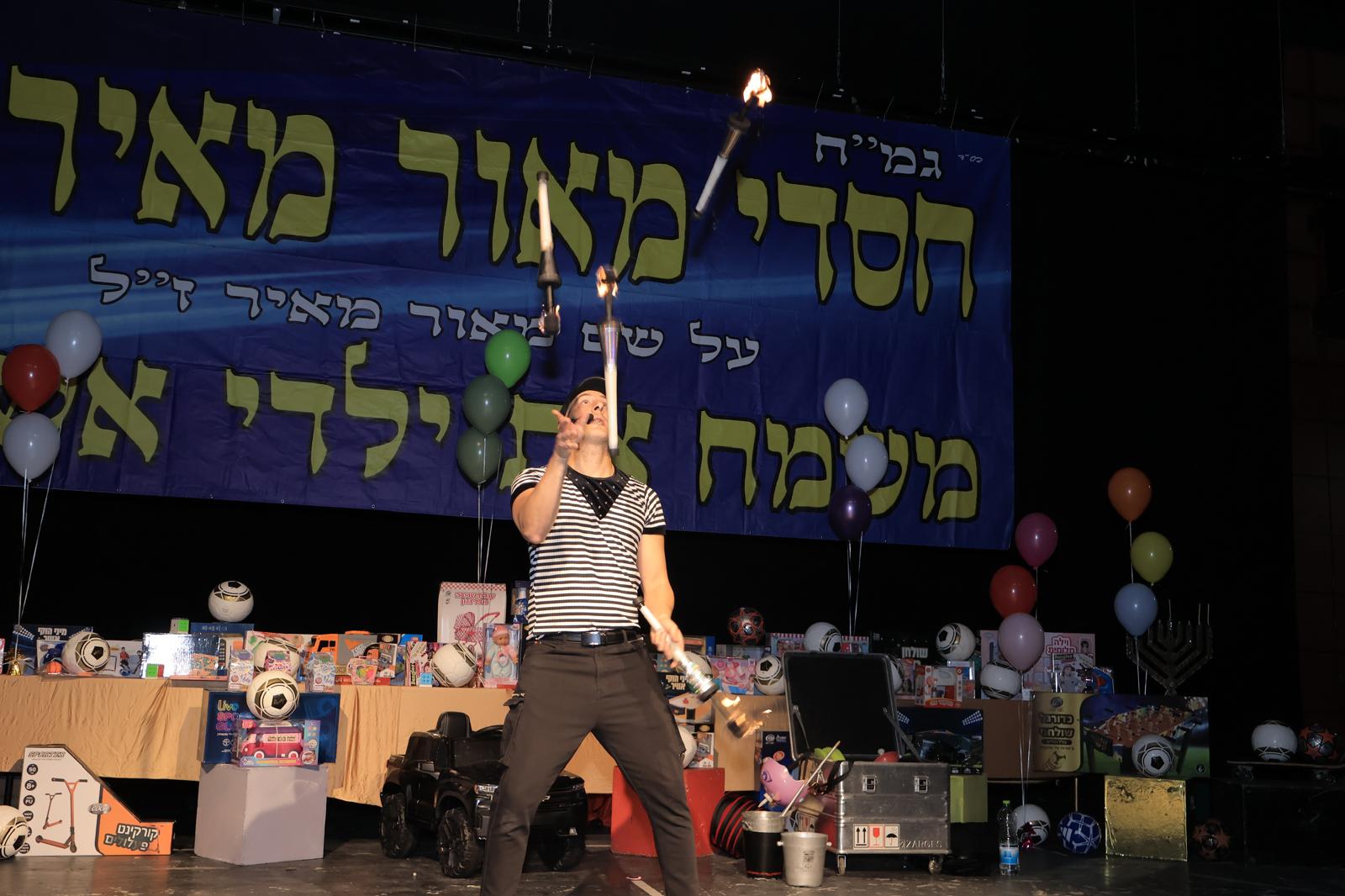 מאות ילדים עם הוריהם תושבי העיר, השתתפו במסיבת חנוכה מרכזית שהתקיים ע"י ארגון "חסדי מאור מאיר" בראשותו של שמעון בן שמעון הי"ו.