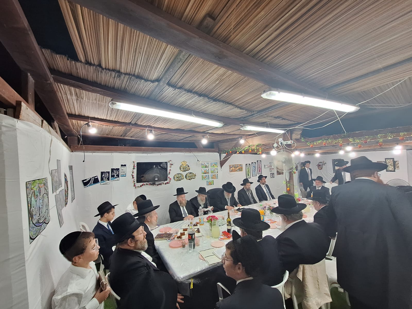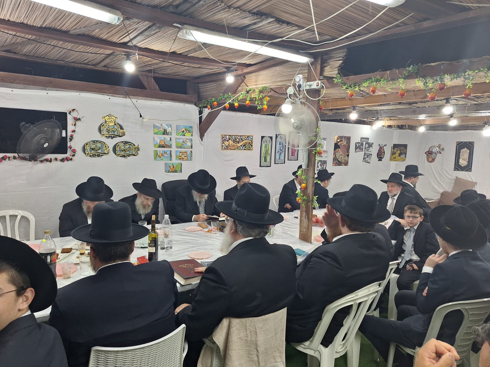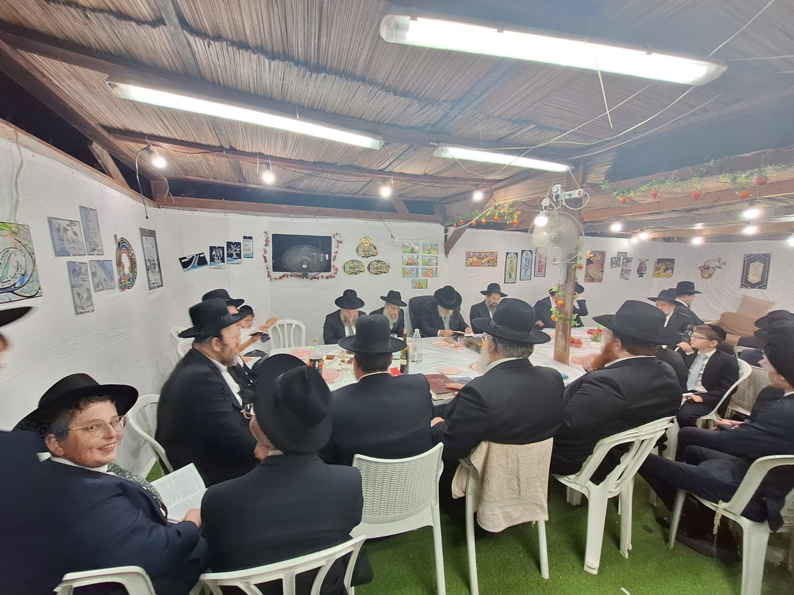 הקבלת פני רבו: ביקור חג חגיגי ביותר של נכבדי הקהילה הליטאית באשדוד בסוכת המרא דאתרא הגר"י שיינין שליט"א עם צאת החג הראשון.