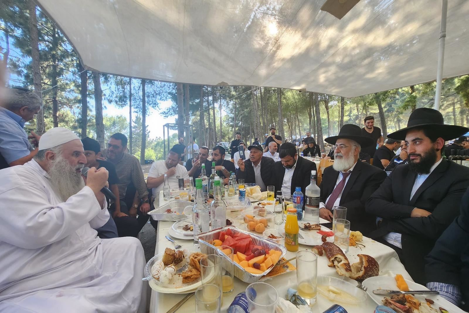 במהלך הסעודה נשא דברים הגר"מ אבוחצירא משגב רום קדושתו של בעל ההילולא וגודל מעלת השמחה ביום זה. כן פגש את הרה"צ רבי שלום הרוש מרבני חסידות ברסלב וראש ישיבת "חוט של חסד" ובירכו איש לרעהו. הציבור עבר בהמוניו לקבל כוס של ברכה מהגר"מ אבוחצירא שבירך את כולם ולאחר מכן פתחו במעגלים בשירה ובריקודים עם השיר ואמרתם כה לחי רבי שמעון בר יוחאי.