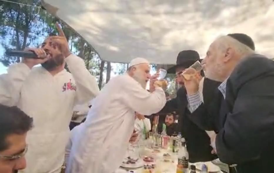 משם המשיכו ליער הסמוך למושב מירון, שם נערכו מבעוד מעוד לסעודת הילולא גדולה כיד המלך שהוכנה על גבי שולחנות רבים, על השירה והפיוט נצחו בעוז ובגאון בנימין בוזגלו ויעקב אבוחצירא הי"ו.