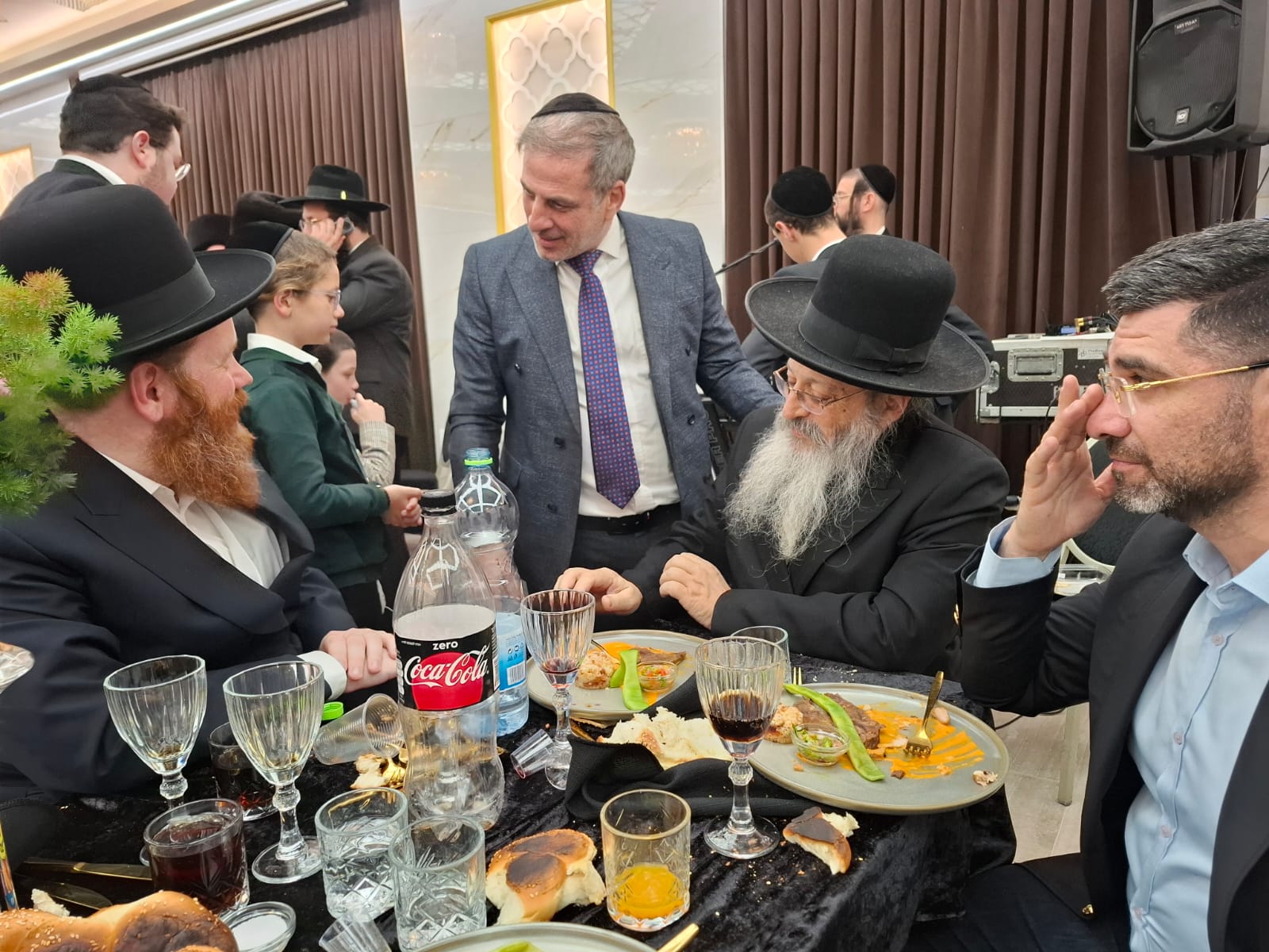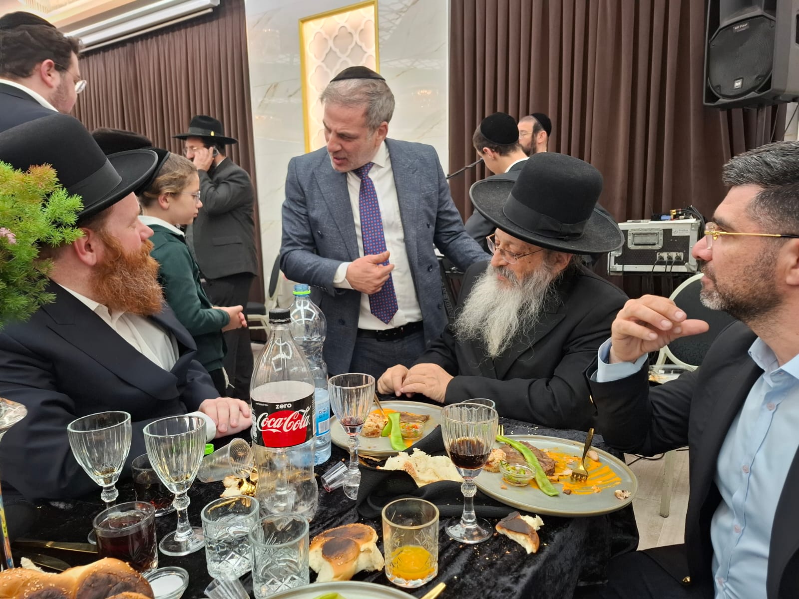 בשולחן המזרח נראו האדמו"ר ממאקאווא שליט"א שהגיע במיוחד מכפר אתא לשמחה, וכן האדמו"רים ממעליץ ומטאלנא, רב חסידי גור הרב גרוס, רבי יקותיאל אבוחצירא ועוד.
