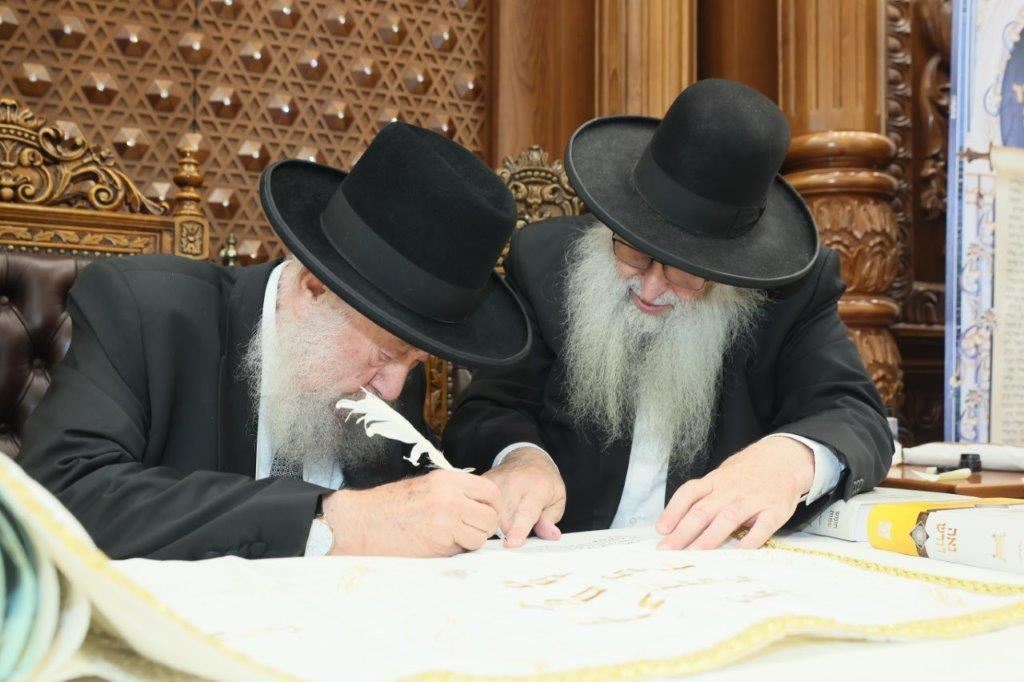 החל משעות הצהריים, רבים ובראשם גדולי תורה רבנים ואישי ציבור נהרו לבית המדרש, שהוכן מבעוד מועד להשתתף ולקחת חלק בכתיבת האותיות האחרונות בספר התורה.