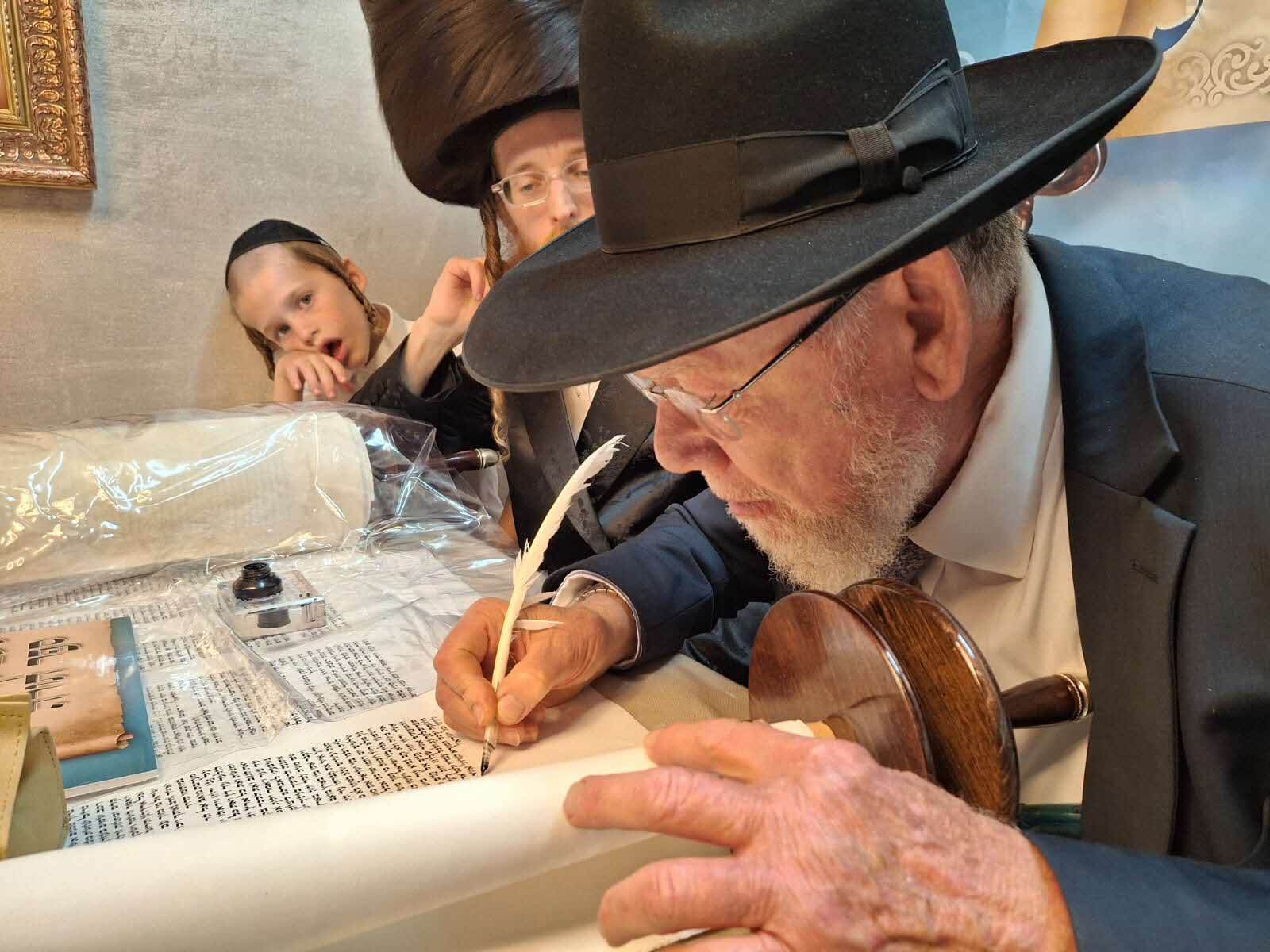 בשעות אחר הצהריים הגיעו לבית המשפחה אדמור"ים, רבנים ואישי ציבור חשובים לכתיבת האותיות האחרונות בספר התורה, בין הבאים הופיע כ"ק האדמו"ר מביאלה-אשדוד, כ"ק האדמו"ר מפיטסבורג, ידיד המשפחה הרב עובדיה דהן שליט"א יו"ר המועצה הדתית, הרה"ח ר' משה טרנובסקי שליט"א ראש מוסדות ומשגיח רוחני בת"ת "המסורה" בירושלים ועוד.