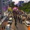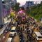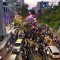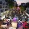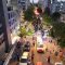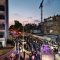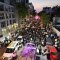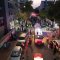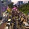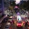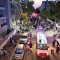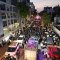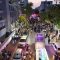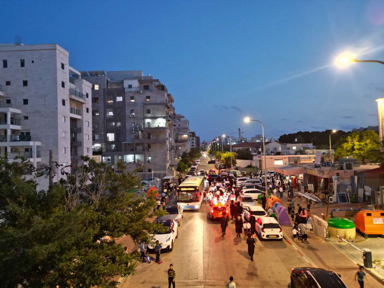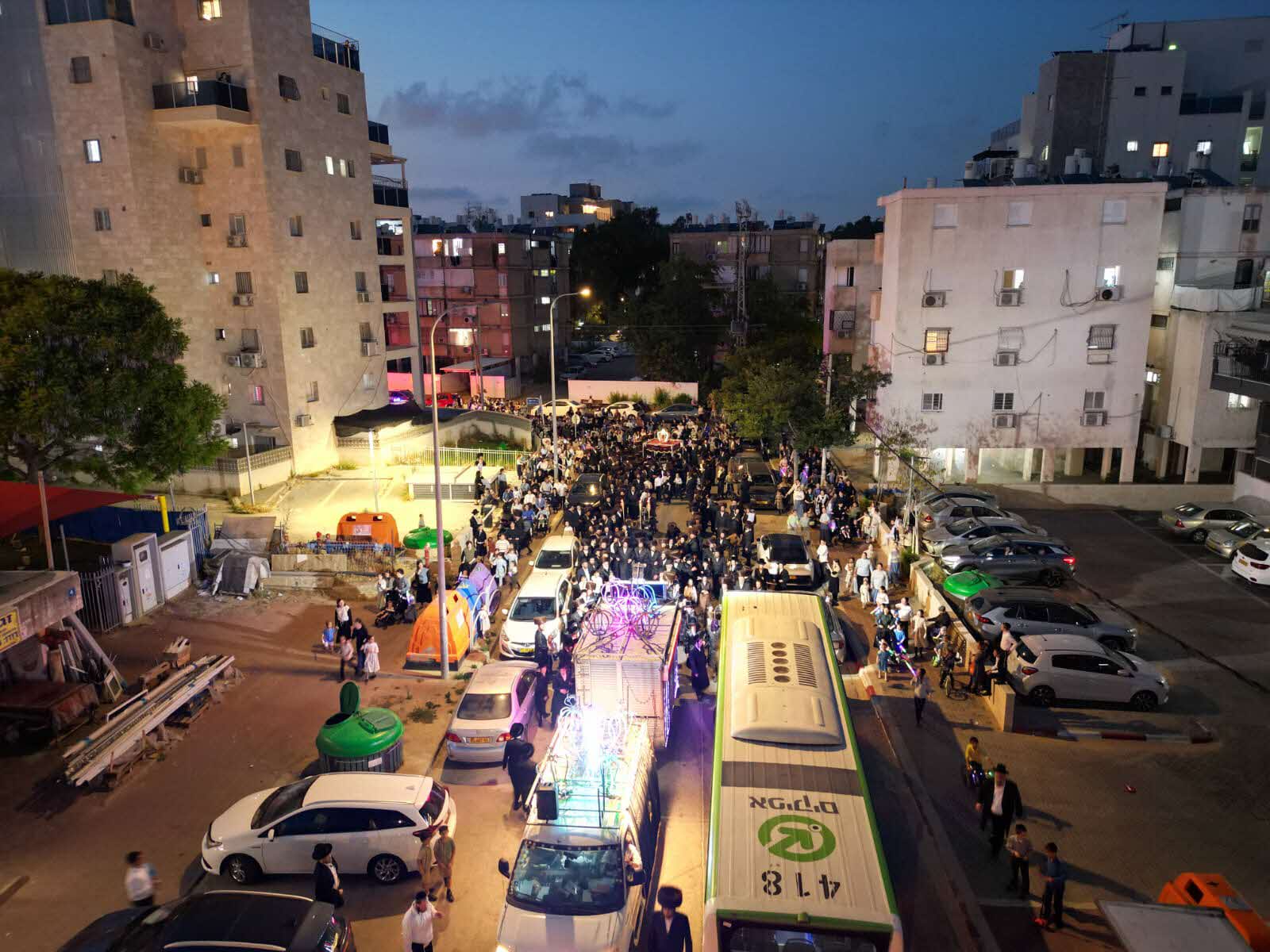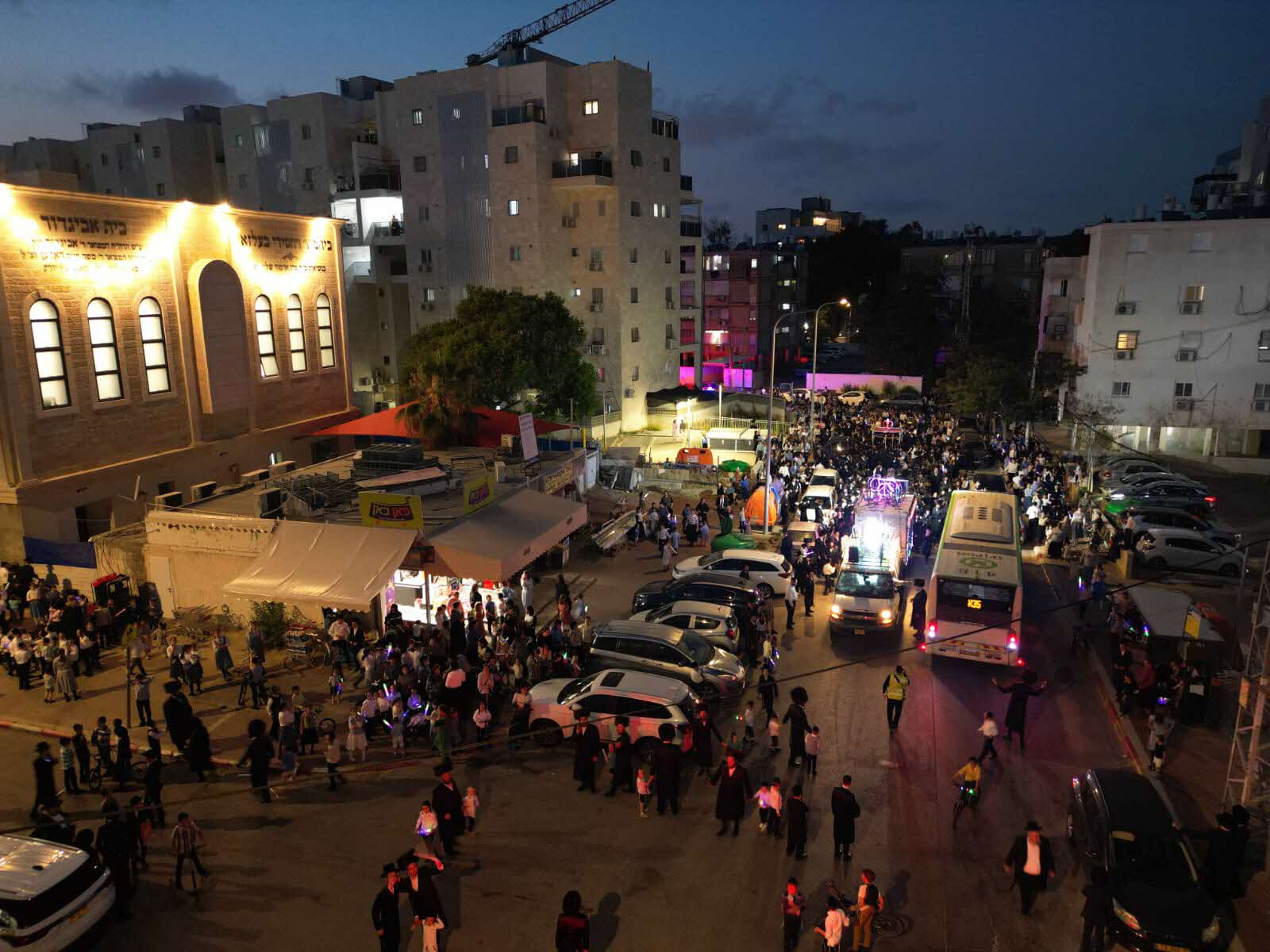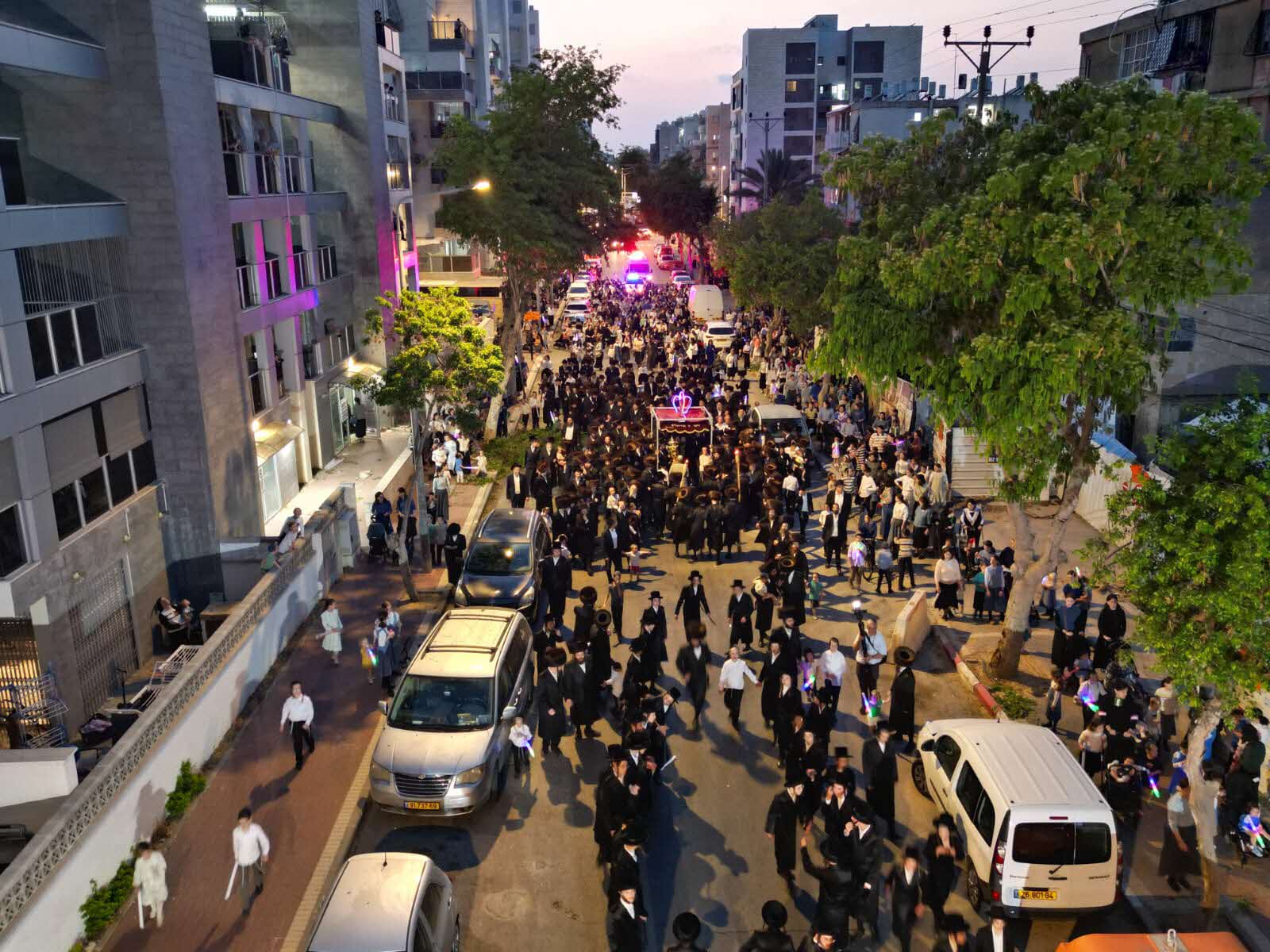 מלפני המלווים, ילדי מתפללי בית הכנסת, צעדו יחד כשרכב תפאורה ענק המקושט בשלל אלפי נורות צבעוניות משמיע כל העת שירים לכבודה של תורה. מידי פעם נטל מי מבין הרוקדים את ספר התורה בזרועו ורקד עימו במרכז המעגלים, לקול צלילי השירה במשך התהלוכה.