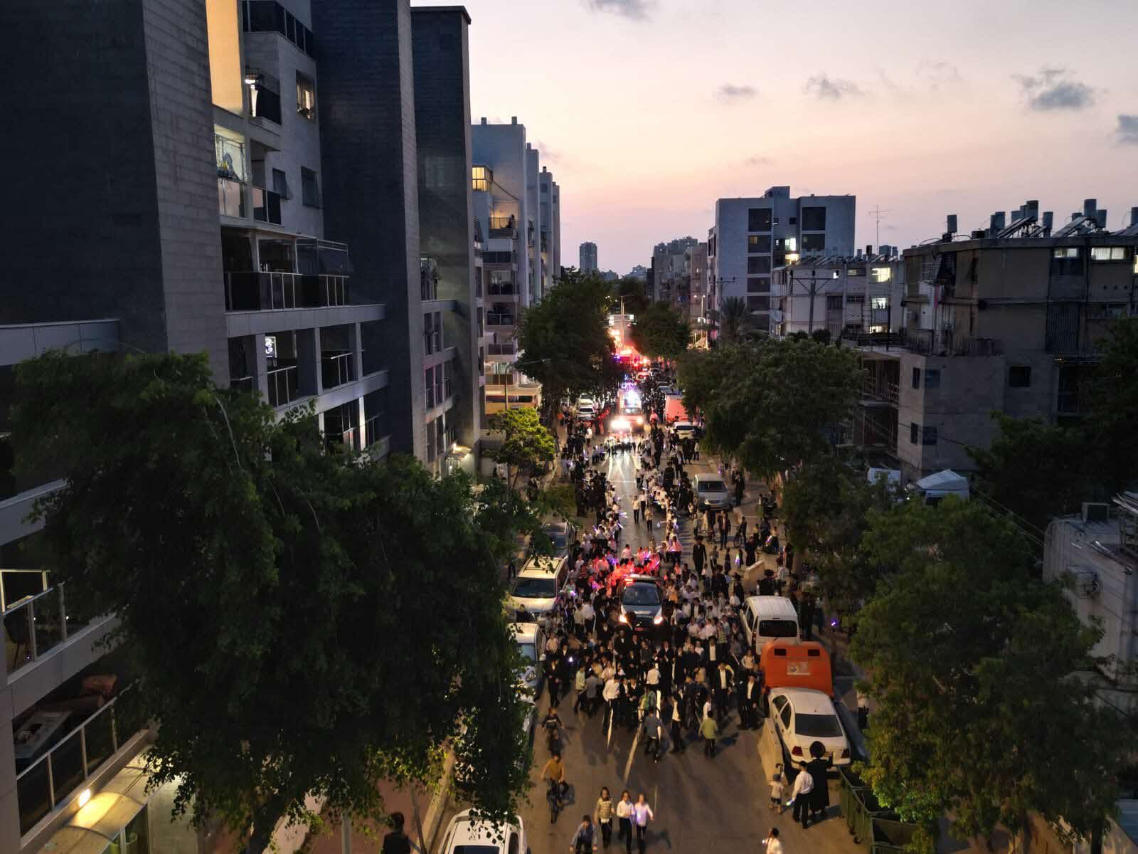 עם סיום כתיבת האותיות בספר תורה ערכו הגבהה וגלילה כנהוג, ולאחר הלבשת המעיל המהודר שהיה רקום ושזור בחוטי זהב מעשי ידי אומן והלבשת הכתר תורה המפואר, בבחינת 'זה ק-לי ואנווהו', יצאו בבגדי שבת בתהלוכה והמון חוגג תחת אפריון בקרית פונוביז', לכיוון רחוב שלמה בן יוסף רובע ו' עד לבית המדרש ברחוב אברהם שפירא, בהשתתפות המונים בשירה ובריקודים לכבודה של תורה, רבים אחרים עצרו את רכבם בצד הדרך לקול צלילי השירה והריקודים לכבודה של תורה ומשתתפים אף הם בשמחה כשהם מוחאים כף ונסחפו למעגלי הרוקדים להשתתף בשמחה הגדולה של הכנסת ספר תורה.