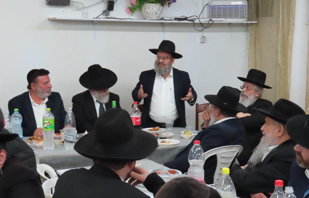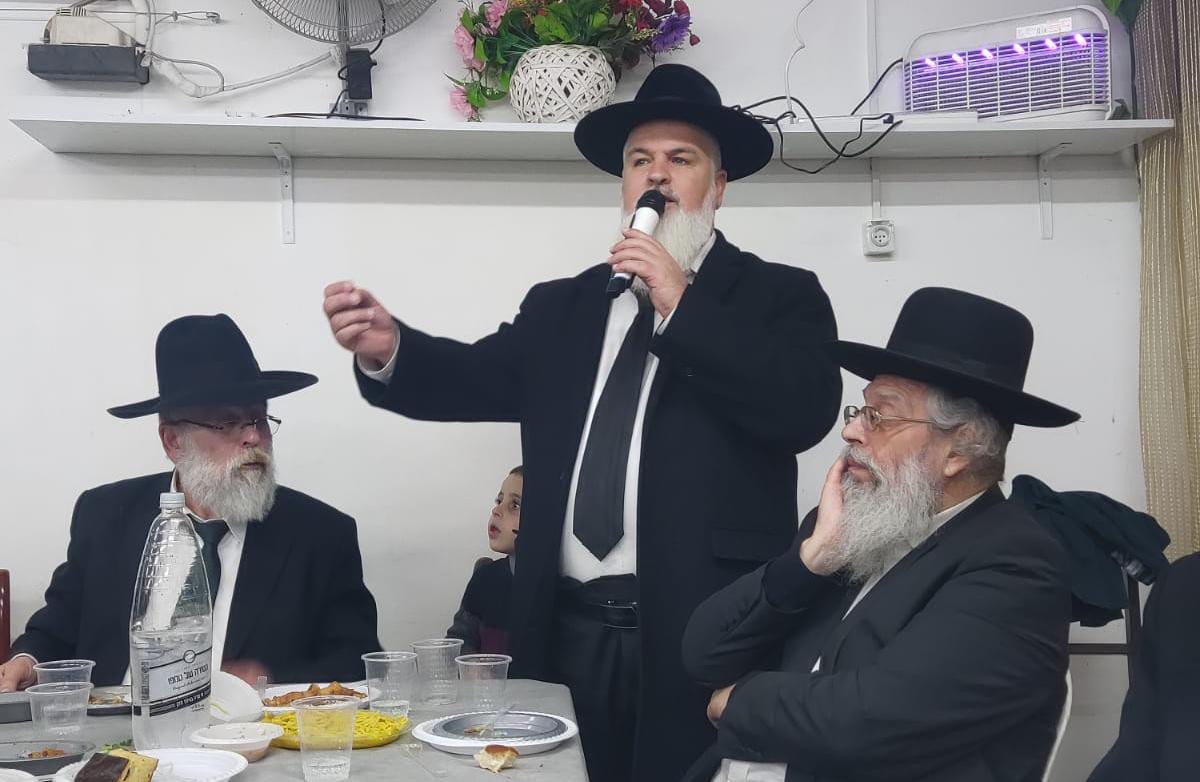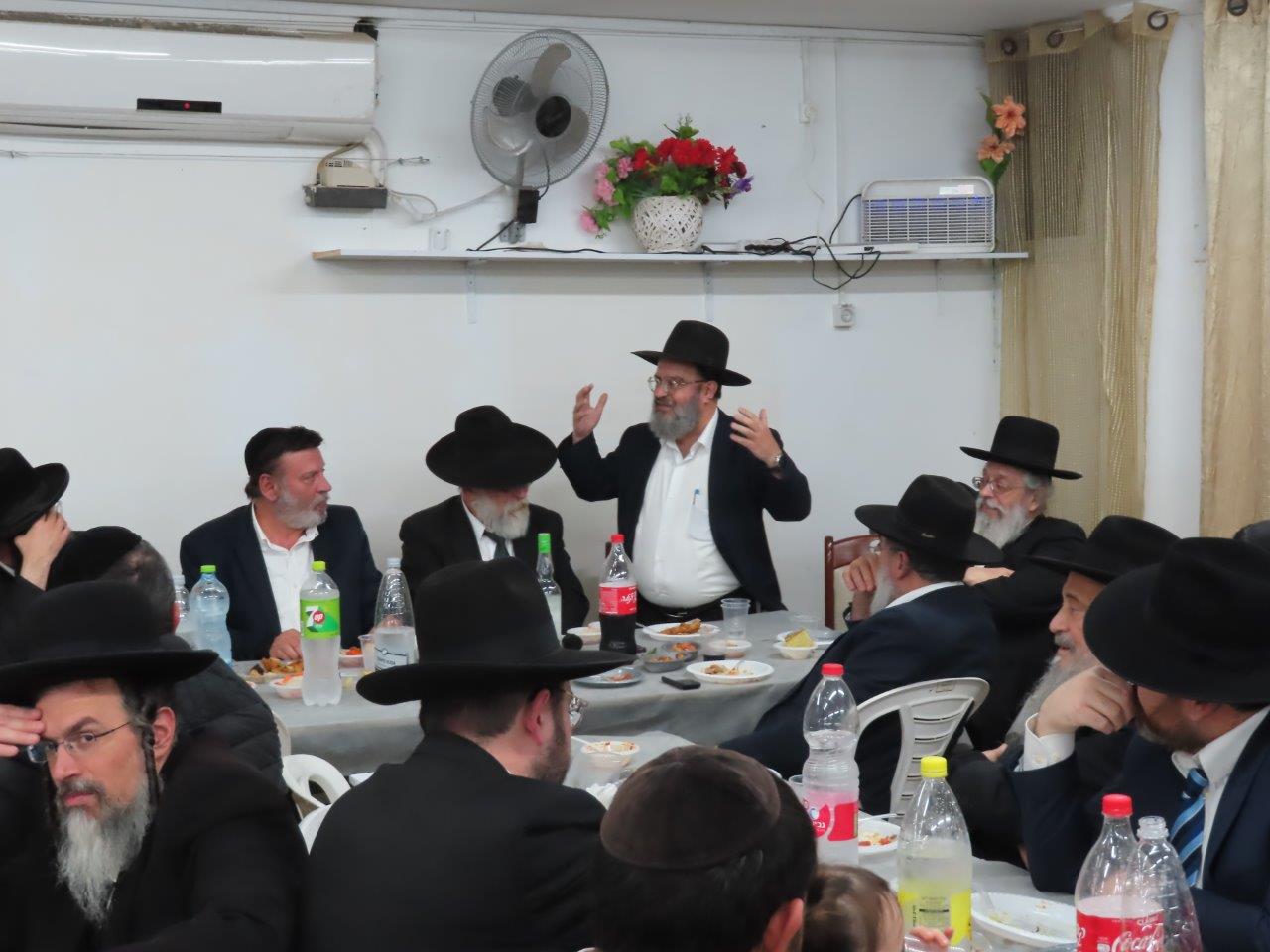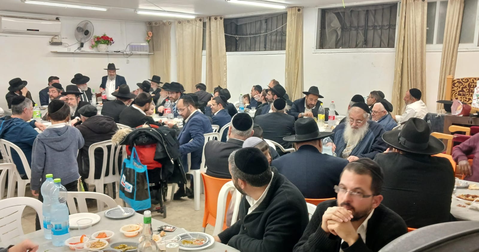 דברי התורה נמשכו גם לאחר תפילת ערבית בסעודת המצוה באולם שע"י בית הכנסת.