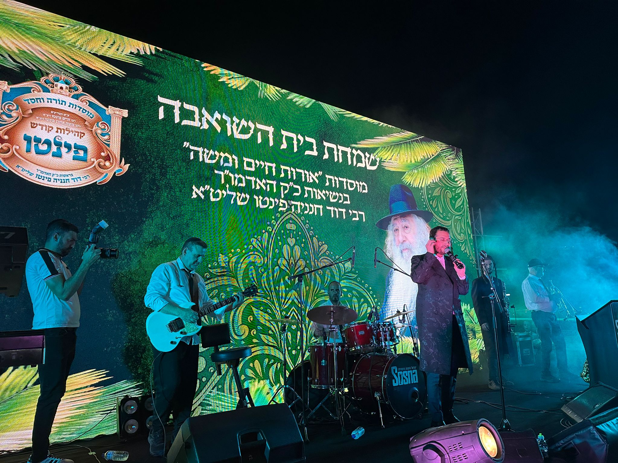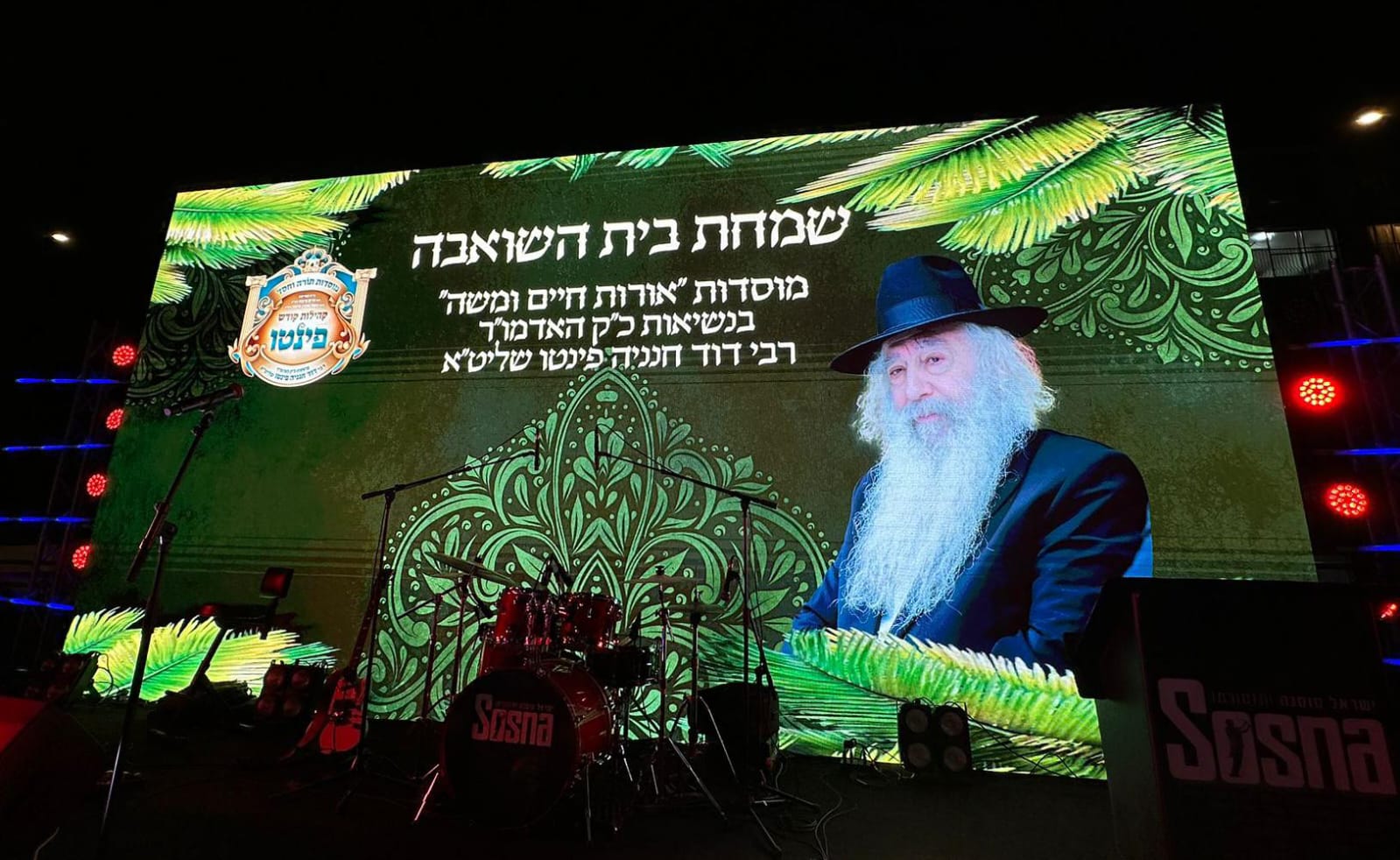 האדמו"ר בנש"ק הגה"צ רבי דוד חנניה פינטו שליט"א, נבצר ממנו להשתתף במעמד, אך בירך את כל המשתתפים בברכת מועדים לשמחה ושיזכו לשפע מאורות הגדולים של שמחת חג הסוכות שתלווה אותם לכל השנה כולה. לקראת חצות לילה הסתיימו השירה והריקודים, כשכולם מלאים שבח והודאה להאדמו"ר בנש"ק הגה"צ רבי דוד חנניה פינטו שליט"א על יוזמתו הברוכה בשמחה הגדולה של שמחת בית השואבה שהרקיע שחקים שוודאי תיזכר בליבותיהם של כל המשתתפים.