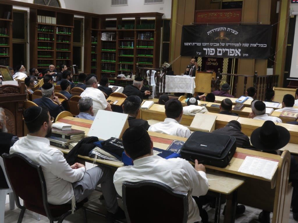 לאחר תפילת מנחה, בית הכנסת היה מלא וגדוש בקהל רב שהגיע לשמוע דברי חיזוק והתעוררות מפי הרבנים: הרה"ג ר' איתמר מחפוד שליט"א אב"ד "חוקת משפט" ורו"כ תפילה למשה", הרב עובדיה דהן שליט"א יו"ר המועצה הדתית, מזכה הרבים הרב חיים זאיד. את העצרת חתם הגאון הגדול רבי נתן נטע לנדמן שליט"א רבה של חולון.