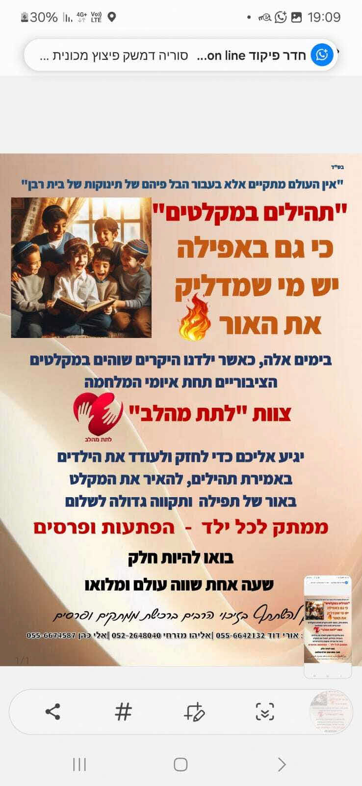 הערב התקיימה פעילות במע"ר בשיתוף פעולה נפלא עם בית הכנסת "סוכת רחמים" ע"ש רחמים רביבו זצ"ל שם אמרו הילדים תהלים להצלחת כוחות הביטחון ולישועת ישראל.