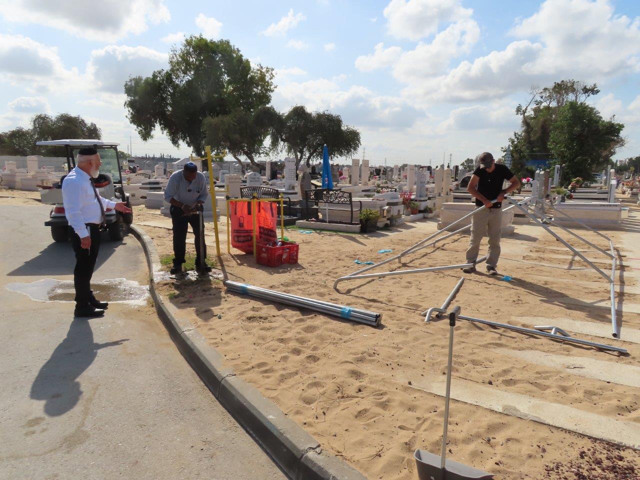 אתמול, ראשון, הגיע הרב עובדיה לחלקה "ש6" יחד עם עובדי בית העלמין, על מנת לנקות את אזור החלקה עקב רוחות נושבות בשבוע האחרון, ניקוי בין המצבות גיזום של ירק, נרות נשמה וספרי תהילים.