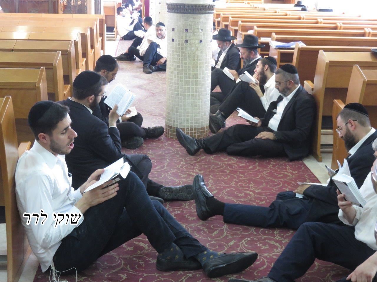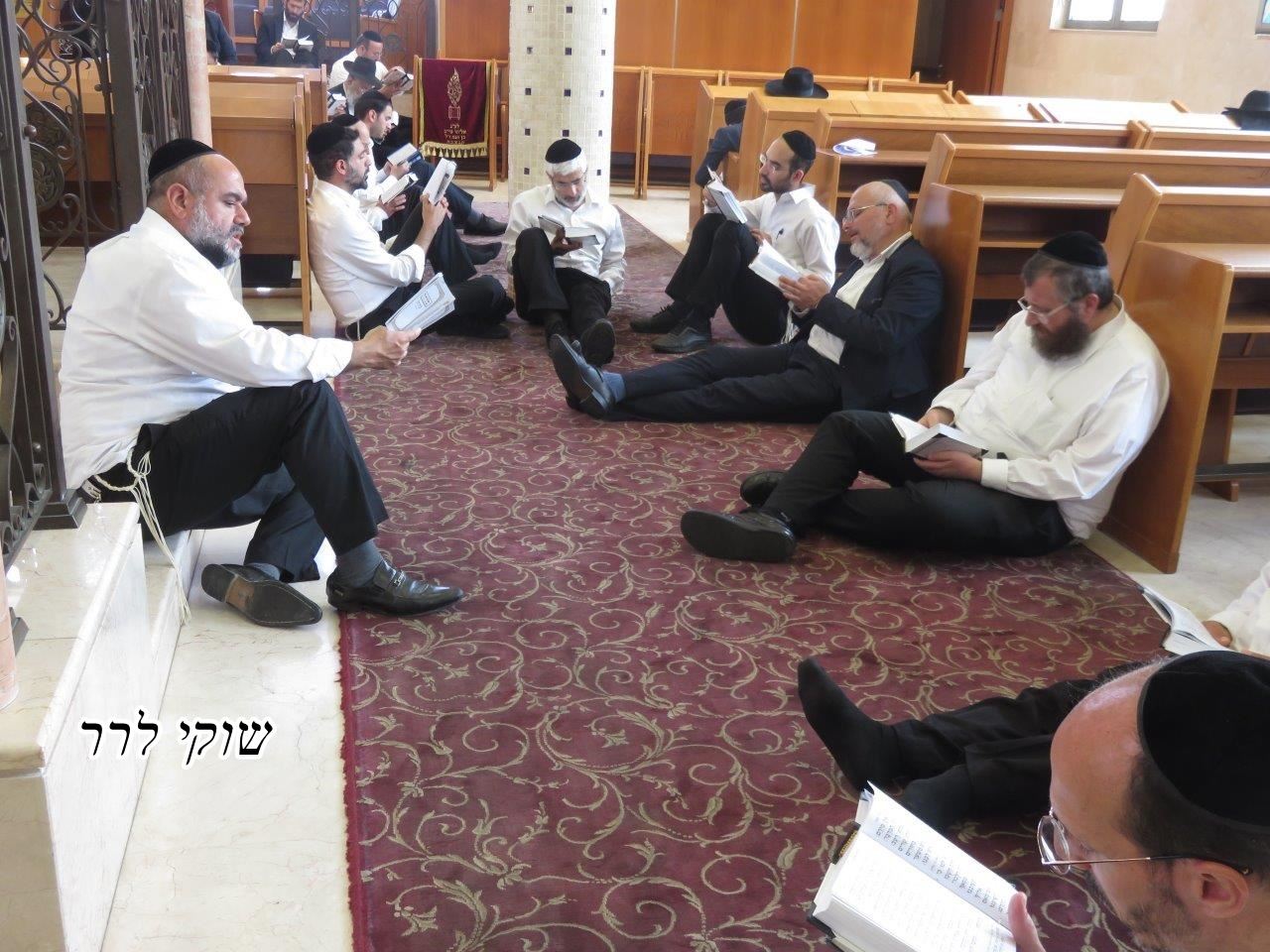 לאחר שני פרקי תהילים הציבור כולו ישבו על הקרקע, והרבנים ישבו לצד מרגלות ארון הקודש וקראו את ה"תיקון חצות" והקינות כמובא בסידור, כשבסיום קראו פסוקי נחמה לראות בבנין ציון וירושלים.