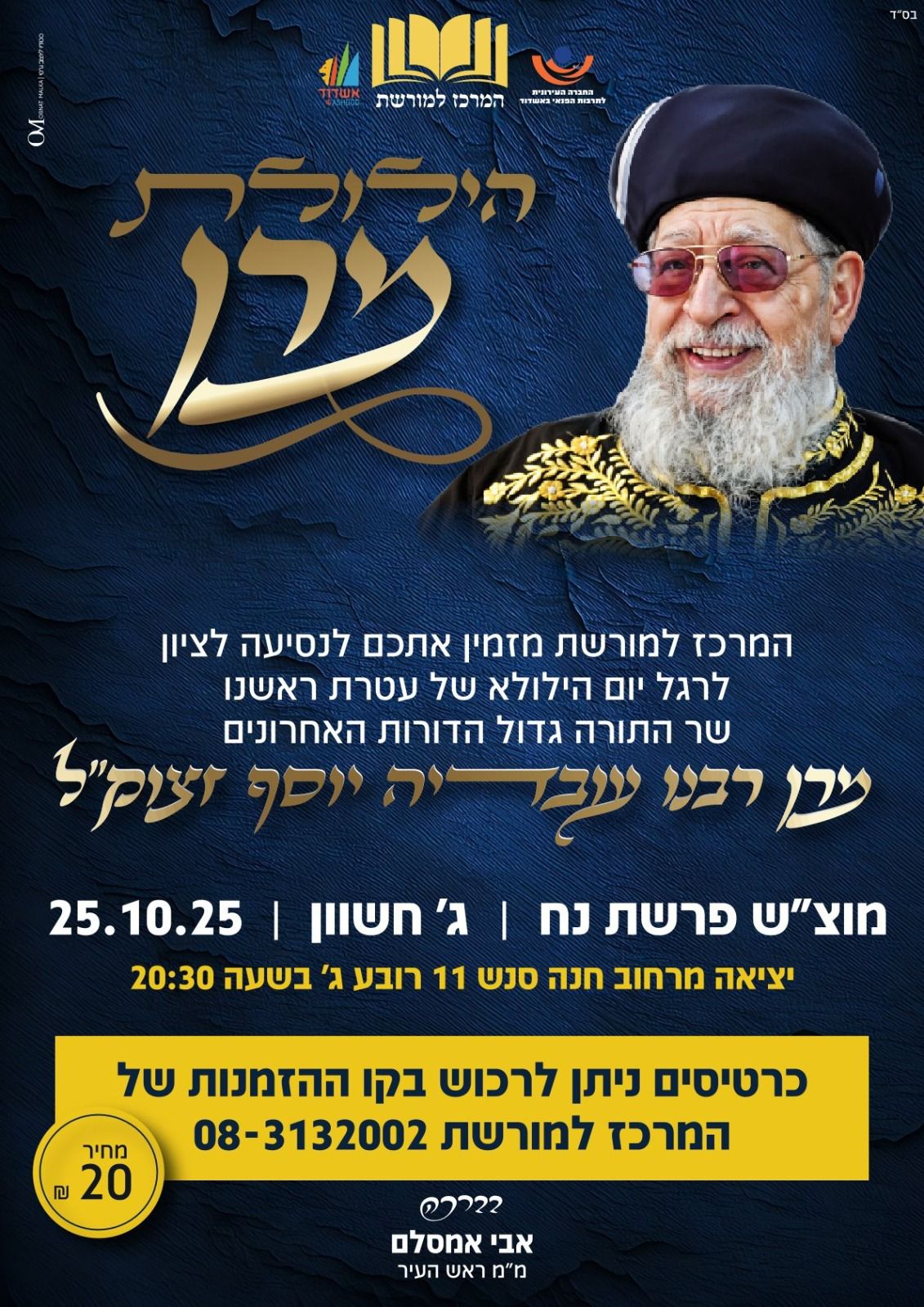 מ"מ ראש העיר הרב אבי אמסלם ממונה 'המרכז למורשת' מסר: "אנו שמחים לקחת חלק ביוזמה הברוכה של שורת מיזמים להנצחת זכרו של מורינו ורבינו גאון הדורות האחרונים מרן הגר"ע יוסף זצוק"ל. יהי רצון שיעמדו הדברים לזכרו העצום ולזכותנו, להמשיך את דרכו, לפאר ולרומם את מורשת יהדות ספרד המעטירה".