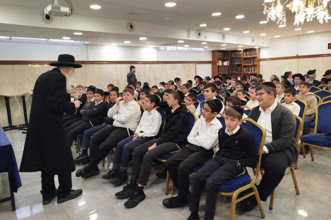 הגה"צ רבי יהודה יוספי שליט"א פה מפיק מרגליות ומגדולי מזכי הרבים הגיע במיוחד מבני ברק לתלמוד תורה "מורשה" בקרית פונוביז'.