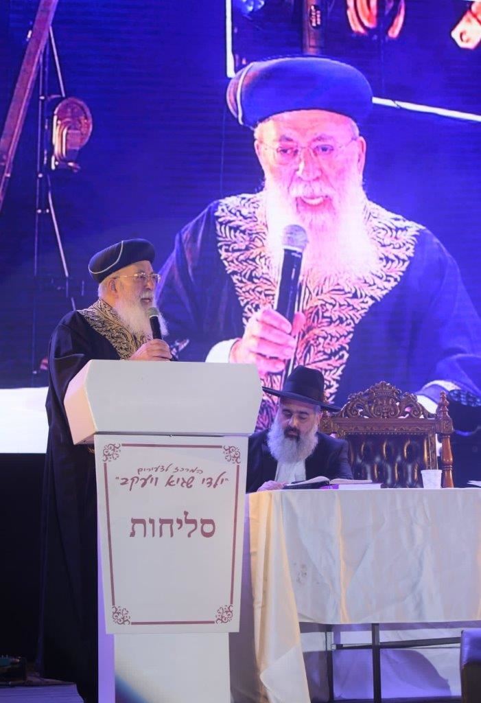 המשא המרכזי במעמד המרגש היה של מרן הראשון לציון הגאון רבי שלמה עמאר רבה של ירושלים. בתחילה דיבר על מעלתו של משה רבינו ע"ה והבאת לוחות השניות על ידיו במשך ארבעים יום שהיה מתחחנן אל ה' שיסלח לעם ישראל עד יום הארבעים שזה היום הקדוש – יום הכיפורים ואז נאמר למשה רבינו מפי הגבורה "סלחתי כדברך" ומאז נקבע יום קדוש זה לדורות שהוא יום סליחה וכפרה שהקב"ה סולח לעוונותיהם של ישראל.