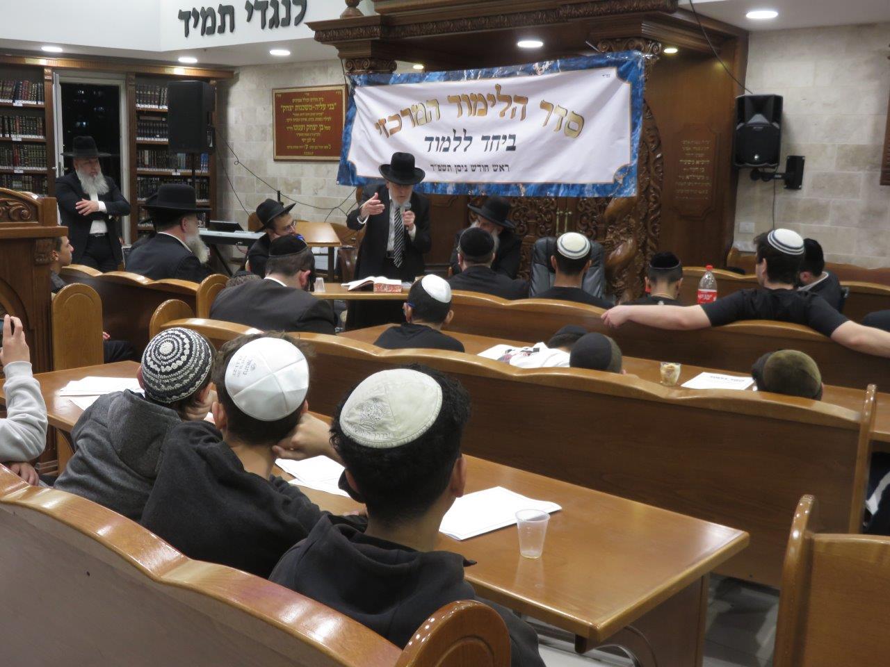 החל בשעות הערב התאספו עשרות ילדים המתחנכים במסגרת פעילותם הברוכה של מוסדות "כנסת ישראל" בעירנו, בהיכל הכולל בבית המדרש, כאשר כל תלמיד קיבל מהמחנכים דפי לימוד חזרה לקראת חג הפסח הנקראים בשם "ביחד ללמוד" ושם מובא בקצרה דף גמרא בפרק ערבי פסחים, וקיצור הלכות חג הפסח, שהם שיננו היטב, כך למעלה משעה שקדו המחנכים ותלמידי מדרשיות ביחד ללמוד בלהט של תורה.