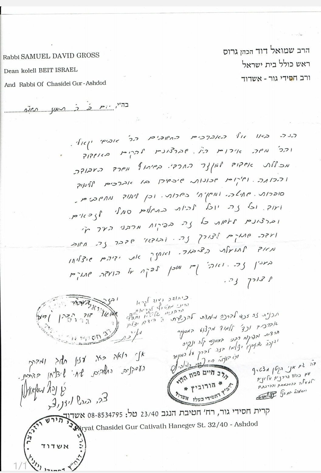בסופו של דבר, לאחר שאספתי את גבאי בתי הכנסת הכלל חסידיים בעיר והבהרתי להם שאם לא נתאחד כגוש אחד לעולם לא נקבל מגרשים באשדוד, ולאחר מכן עוד רצתי מאדמו"ר לאדמו"ר בכדי לקבל את הסכמתו לרעיון האיחוד כגוש, הועלה הרעיון שהיוזמה האשדודית תזכה לגיבוי מצד ח"כ. עליתי לביתו מספר פעמים אך לא הצלחתי לפוגג את חששיו. הוא הגיע לעיר, ישב בביתי כמה פעמים כשהוא נפגש עם ראשי הקהילות, ואכן נוכח לדעת שישנה היתכנות. בעקבות זאת הוא הביע את הסכמתו לרעיון ומכאן נסללה הדרך לריצה מאוחדת של הציבור הכלל חסידי באשדוד, ולאחר מכן באלעד, ביתר ובית שמש, כשהיום הגוף הזה נחשב לדעתי לאחד הגופים החרדיים החזקים והעוצמתיים ביותר ביהדות החרדית.
