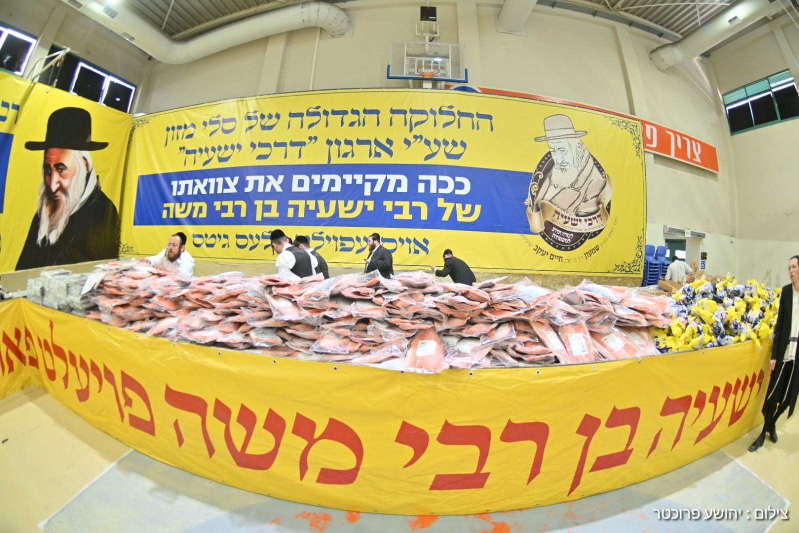 הארגון מספק סלי מזון עשירים שמחולקים מידי ערב שבת מברכין לעשרות משפחות בעיר, אך בכל יא"צ של רבי ישעיה אנו מחלקים לא פחות מ4,000 סלי מזון שמגיעים לאלפי משפחות בכל רחבי הארץ, כשמה שמייחד את הפעילות הוא שאיש אינו מגיע לקחת. אנו לא מעוניינים שאלו שמקבלים יאלצו להתבזות ולכן רק גבאי הארגון הם אלו שמגיעים אל ההאנגר הענק שפועל בעיר, כאשר הם לוקחים את הסלים ומשנעים אותם עד לבתים של המקבלים שם הם מניחים אותם ליד הדלת ומסתלקים. בדיוק כפי שר' ישעיה'לה רצה.